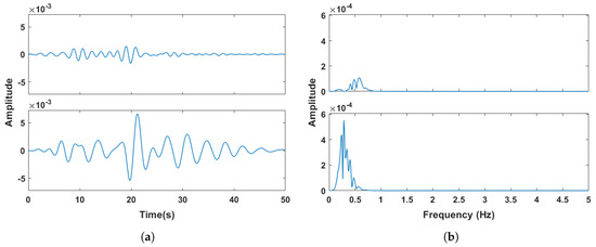 Candidate heartbeats IMFs after VMD. (a) Time-domain spectrum. (b) Frequency-domain spectrum.