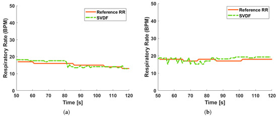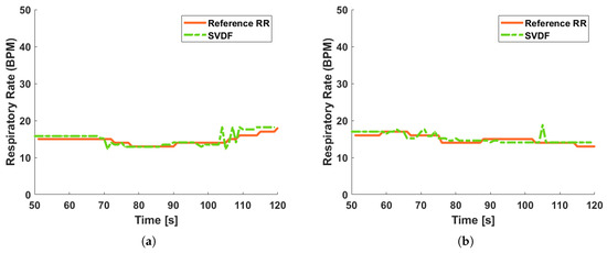 The results of RR estimation. (a) At distance of 0.5 m. (b) At distance of 1.0 m.