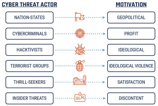 - for Cyber Security, C.C. An Introduction to the Cyber Threat Environment. 2020. Available online: https://cyber.gc.ca/en/guidance/introduction-cyber-threat-environment (accessed on 5 June 2021).