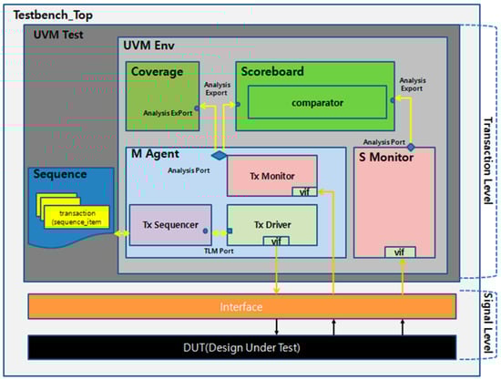 To address these challenges, new verification methodologies have been developed, and one of the most widely adopted approaches in the semiconductor industry today is the Universal Verification Methodology (UVM) [3,4,5,6]. UVM is a standardized verification methodology developed by the Accellera Systems Initiative to facilitate hardware design and verification within the semiconductor industry [7,8,9,10,11]. However, since UVM is implemented as a SystemVerilog-based class library, constructing testbenches and performing verification require an understanding of SystemVerilog’s OOP principles, class structures, and UVM-specific knowledge. Consequently, mastering this methodology demands a significant investment of time and effort.
