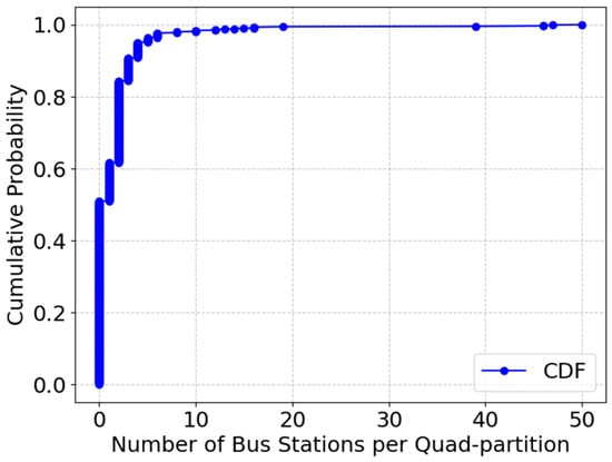 Cumulative distribution of bus stations within quad partitions.