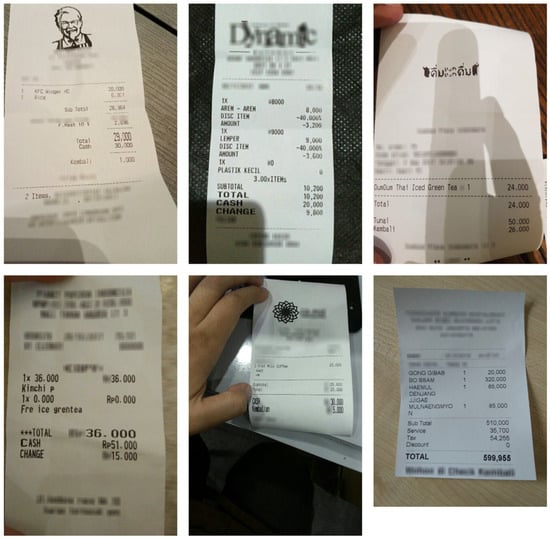 Visual Features: The positioning of text relative to other visual elements (such as logos, barcodes, and icons), the layout of text in different regions of the receipt (e.g., header, body, and footer), and the recognition of graphical elements that contribute to the document’s overall meaning.