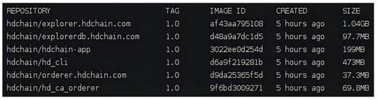On the Ubuntu operating system, first, install the Docker environment and configure the relevant dependencies and create the directory of files required by Hyperledger Fabric. Pull the source code for Hyperledger Fabric version V1.4.4 and start the network by executing the byfn.sh script. The system will automatically download the required related images. After the installation is complete, use the command ‘docker images|grep Hyperledger’ to check if the images were successfully downloaded and installed. The result of the relevant image check is shown in Figure 11.