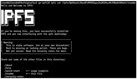 In order to realize efficient interoperability between IP blockchain and IPFS, go to the IPFS official website on the virtual machine to download and install the go-ipfs installation package. Initialize IPFS by executing the ‘ipfs init’ command to create a brand new IPFS repository and generate a unique identifier for the repository to ensure its independence and uniqueness in the network. Successfully add other nodes in the private network to the Bootstrap list. Create a private network node using a fixed public IP address in the private network environment as a basis for connecting to other nodes to ensure the stability and reliability of the network. The IPFS startup process is shown in Figure 13.