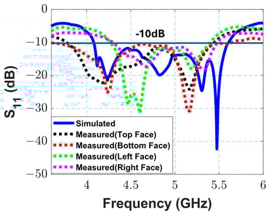 - Qi, J.; Wang, Q.; Deng, F.; Zeng, Z.; Qiu, J. Low-Profile Uni-Cavity High-Gain FPC Antenna Covering Entire Global 2.4 GHz and 5 GHz WiFi-Bands Using Uncorrelated Dual-Band PRS and Phase Compensation AMC. IEEE Trans. Antennas Propag. 2022, 70, 10187–10198. [Google Scholar] [CrossRef]