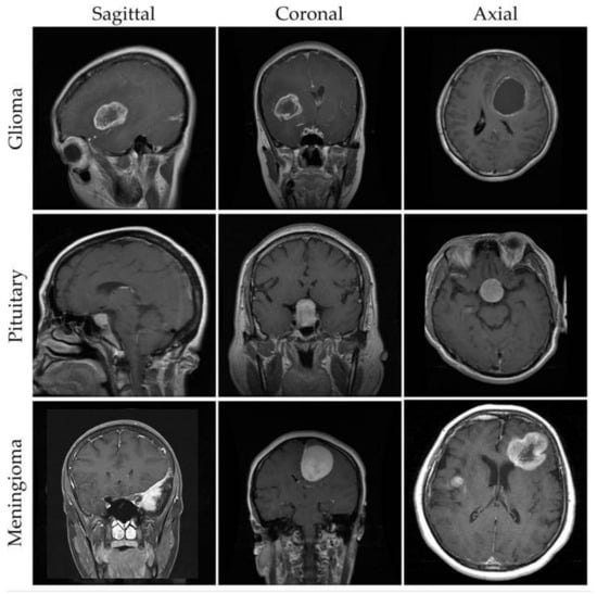 Among the more common brain tumors, glioma, pituitary, and meningioma collectively account for a significant portion of new cases worldwide, with annual reports indicating substantial morbidity and mortality [6,7]. Gliomas involve glial cells and can exhibit highly aggressive behavior, frequently classified under the World Health Organization’s higher-grade categories [8,9]. Pituitary tumors, arising within the pituitary gland, are generally slower-progressing and exhibit lower metastatic potential [10]. Meningiomas, which originate from the meninges, often manifest benignly yet can present with symptoms such as seizures, chronic headaches, and vision impairments when their growth impacts critical cerebral regions [11,12,13,14].