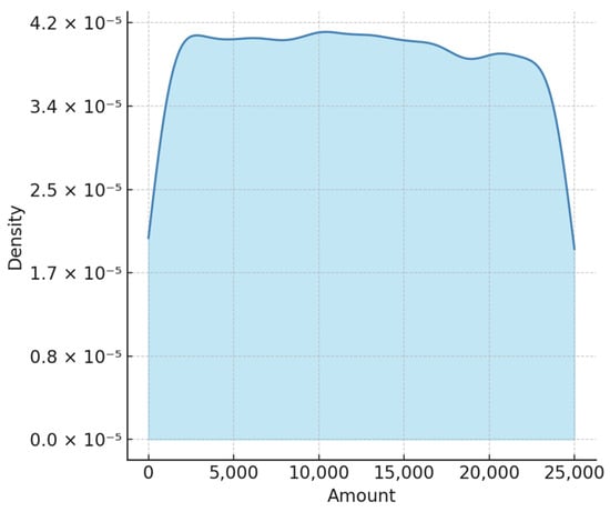 The kernel density estimate plot, via the command sns.kdeplot(data=data[‘Amount’], shade=True), showed a smooth representation of the distribution, indicating that the transaction amounts are positively skewed, and most values fall in the lower range of the data distribution.