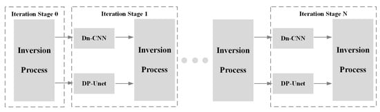 In this section, our deblurring model follows the architecture introduced in our prior work [35], as depicted in Figure 6. This model performs single-image deblurring through an iterative process. Each iteration consists of a Dn-CNN network and a DP-Unet network, whose outputs are combined through an inversion process based on the discrete Fourier transform to obtain the deblurred image at that stage. Dn-CNN is the denoising convolutional neural network introduced in [34], while DP-Unet is the dual-path U-net structure proposed in [36].