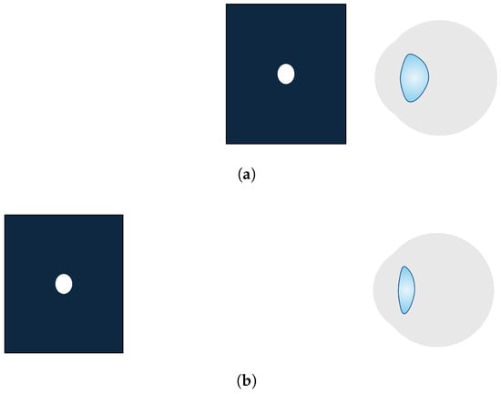 Change in pupil size with depth levels: (a) when focusing on a nearby object and (b) when focusing on a distant object.