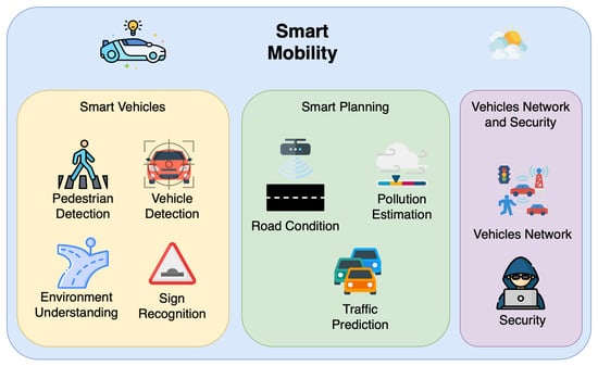 The discussion so far highlights how smart mobility is a complex ecosystem made up of multiple specific topics that, even though focused on specific aspects and/or research topics, are strictly related to each other. Unfortunately, the literature review revealed that no survey covers all the DL applications involved in smart transport systems. They either cover a specific aspect (hardware, networking, applications, or datasets) or focus on a single application (autonomous driving, traffic management, or infrastructure monitoring). Additionally, they do not discuss how recent DL technologies have impacted the cross-application, lower-level tasks of smart mobility, which is fundamental to keeping abreast of open challenges and potential future directions.