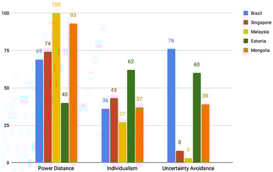 The countries included in the study are Brazil, Singapore, Malaysia, Estonia, and Mongolia. They were selected primarily due to their differences in cultural dimensions found to be related to trust, namely Power Distance, Individualism, and Uncertainty Avoidance: