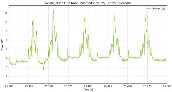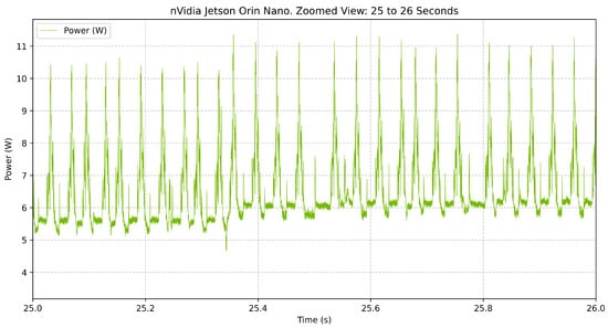 Zoomed-in power consumption of the NVIDIA Jetson Orin Nano within a 1-s interval during inference execution.