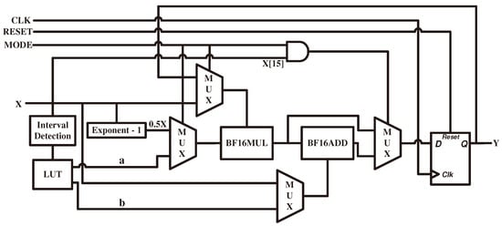 - Li, L.; Zhang, S.; Wu, J. An Efficient Hardware Architecture for Activation Function in Deep Learning Processor. In Proceedings of the 2018 IEEE 3rd International Conference on Image, Vision and Computing (ICIVC), Chongqing, China, 27–29 June 2018; pp. 911–918. [Google Scholar]