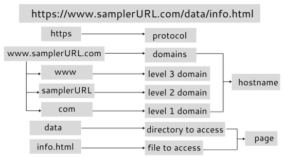 - Lexical Features: “Lexical Features are collected through lexical scanning” [17] derived from the layout and structure of the URL string or name itself, without gaining access to the content of the website or requiring network analysis to be conducted. In summary, it comprises the characteristics of the URL string such as length, hyphens, special characters, number of dots and suspicious keywords present including “update” and “login”. Ref. [13], mentioned that the use of lexical features as a first line of defense in detecting malicious URLs is important due to the possession of a low computational state and reasonable effectiveness.