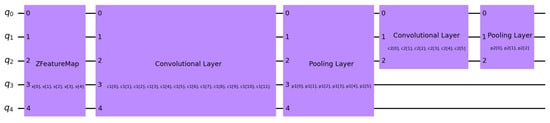 - Quantum Convolutional Layers: A total of two convolutional layers were used to apply a series of quantum gates defined in the layer function to the quantum state, to effectively extract features in the quantum space.
