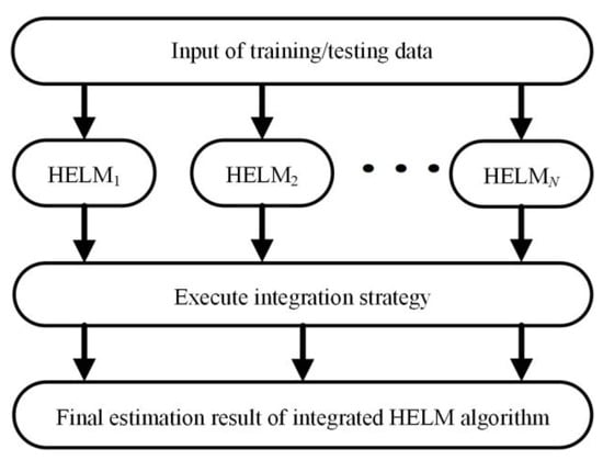 The structure of the I-HELM algorithm is shown in Figure 1. The I-HELM algorithm consists of individual HELM models operating independently, processing input data, and generating output. All models are trained simultaneously using the training data. During the testing phase, the trained models process the test data, and their outputs are combined through an integration strategy to generate the final output of the I-HELM model.