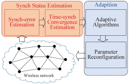 There are two components in an adaptive approach: synchronization status estimation and adaptation. The algorithm first estimates the synchronization status, including synchronization errors and convergence status. Then, it adjusts the synchronization parameters to match the shape of the topology.