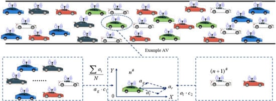 Subsequently, we derive the comprehensive vehicle AV-PSO model, as delineated in Equation (13).