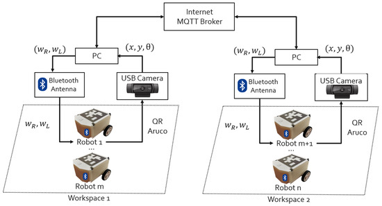 This work includes the development of a low-cost platform of a multi-robot system with a cyber–physical connection. Some multi-robot platforms for educational purposes are based on the development of omnidirectional robots [41,42], cooperative task systems [30], and cyber–physical [17].