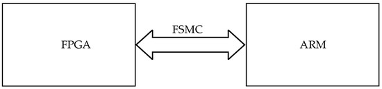 In this design, the ARM processor controls FPGA read/write operations through the FSMC (Flexible Static Memory Controller) bus. The FPGA functionally replaces traditional “ARM + peripheral chip” architectures by consolidating multiple expansion chip functionalities into a single programmable device. This integration achieves three key advantages: enhanced system compactness through component reduction, lower power consumption from simplified interconnects, and improved reliability through minimized signal integrity issues. Furthermore, the FPGA’s hardware reconfigurability enables the rapid adaptation to evolving requirements through HDL (Hardware Description Language) modifications, eliminating physical hardware redesign cycles.