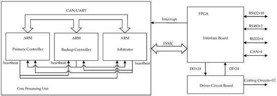 The safety control system employs a synergistic ARM-FPGA architecture that capitalizes on their complementary strengths, effectively addressing the limitations inherent in single-processor solutions. Figure 5 illustrates the comprehensive hardware architecture.