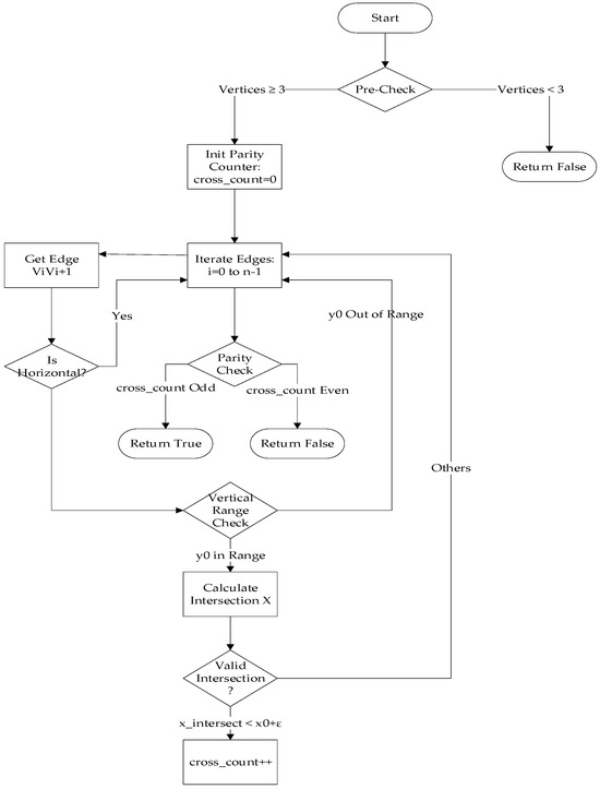- Kumar, G.N.; Bangi, M. An extension to winding number and point-in-polygon algorithm. IFAC-Pap. 2018, 51, 548–553. [Google Scholar] [CrossRef]