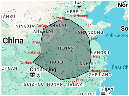 A 12-vertex polygonal boundary was established using geographically distributed coordinates across Central and Eastern China (Table 6).