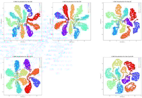 - van der Maaten, L.J.P.; Hinton, G.E. Visualizing data using t-SNE. J. Mach. Learn. Res. 2008, 9, 2579–2605. [Google Scholar]