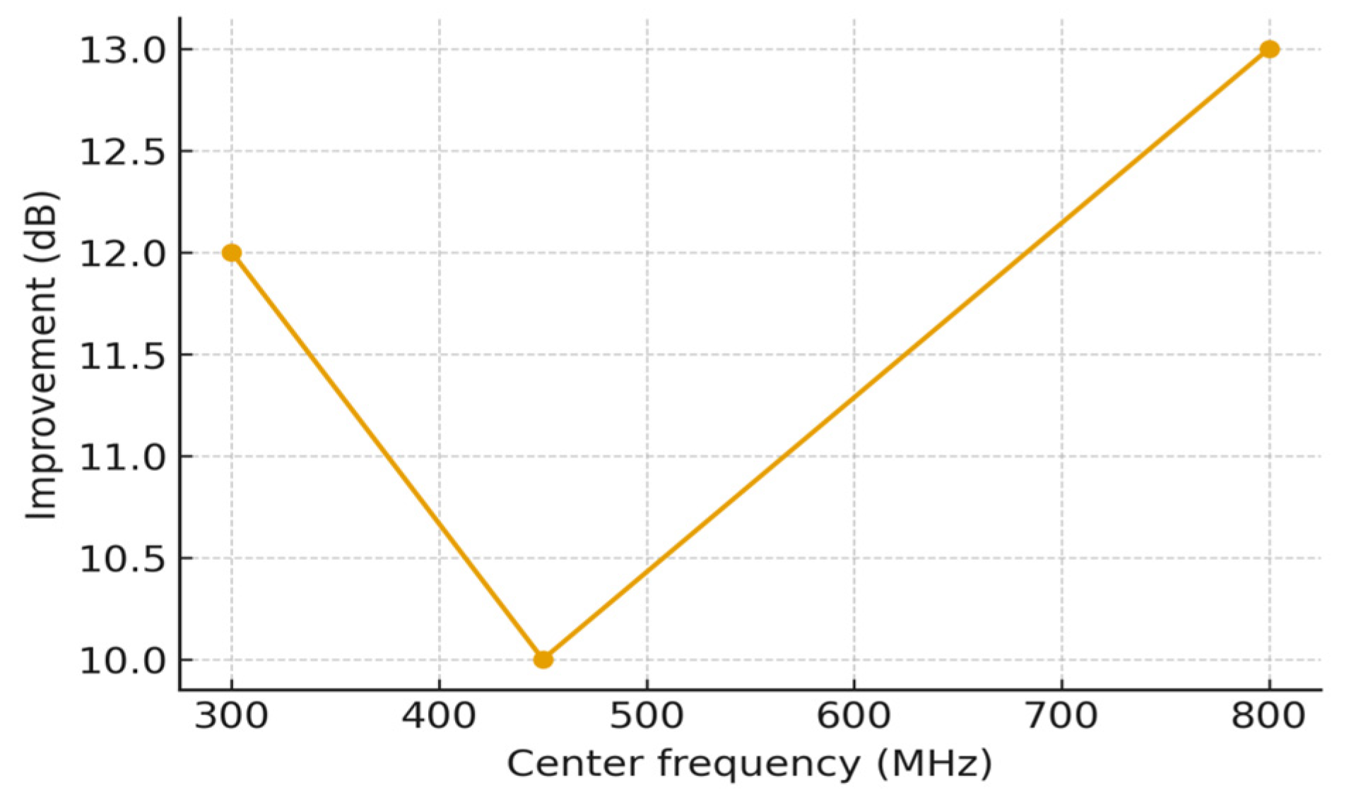 450 MHz, and ≈800 MHz, each within the combined uncertainty of 1σ ≈ 3.1 dB. The
