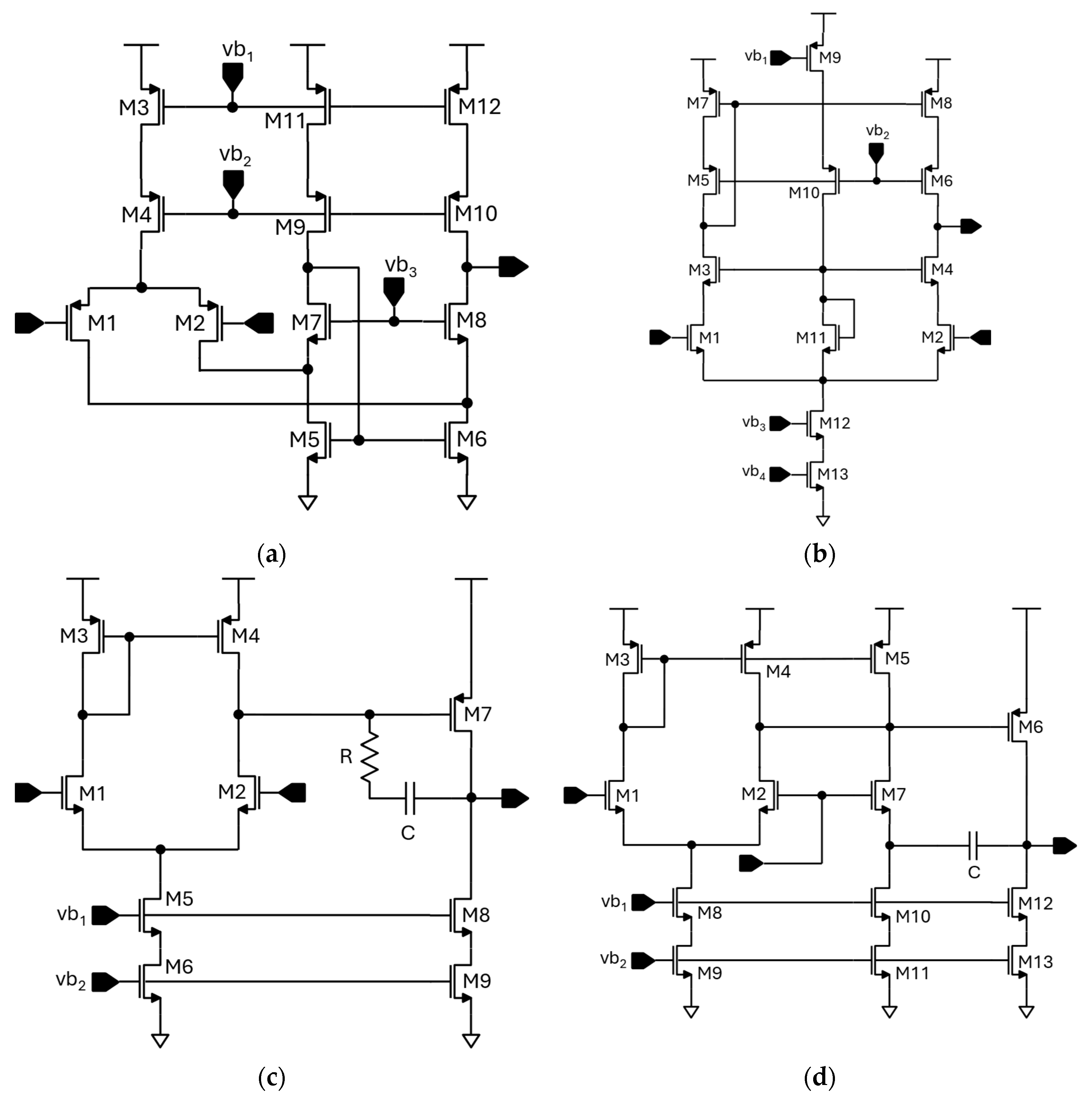 | Transistor-compensated op-amp (50 nm) | M1, M2, M7, M10–M13 | W: 1–5 μm, L: 50–200 nm |