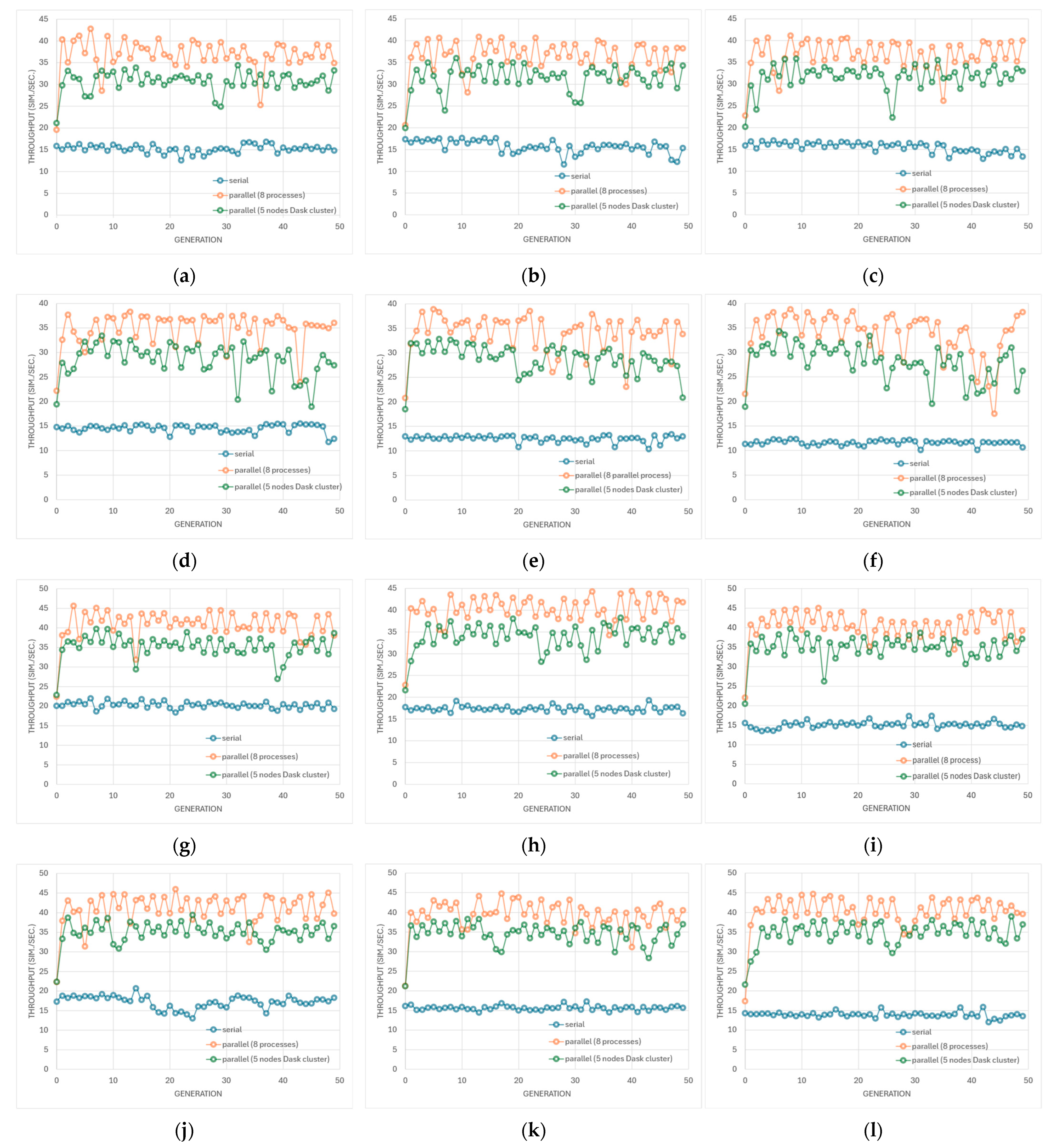 | Design | Algorithm | Average Throughput per Simulation Mode [sim/s] | Average Wall-Clock Time per Simulation Mode [s] | Speedup (Processes) | Speedup (Dask) |