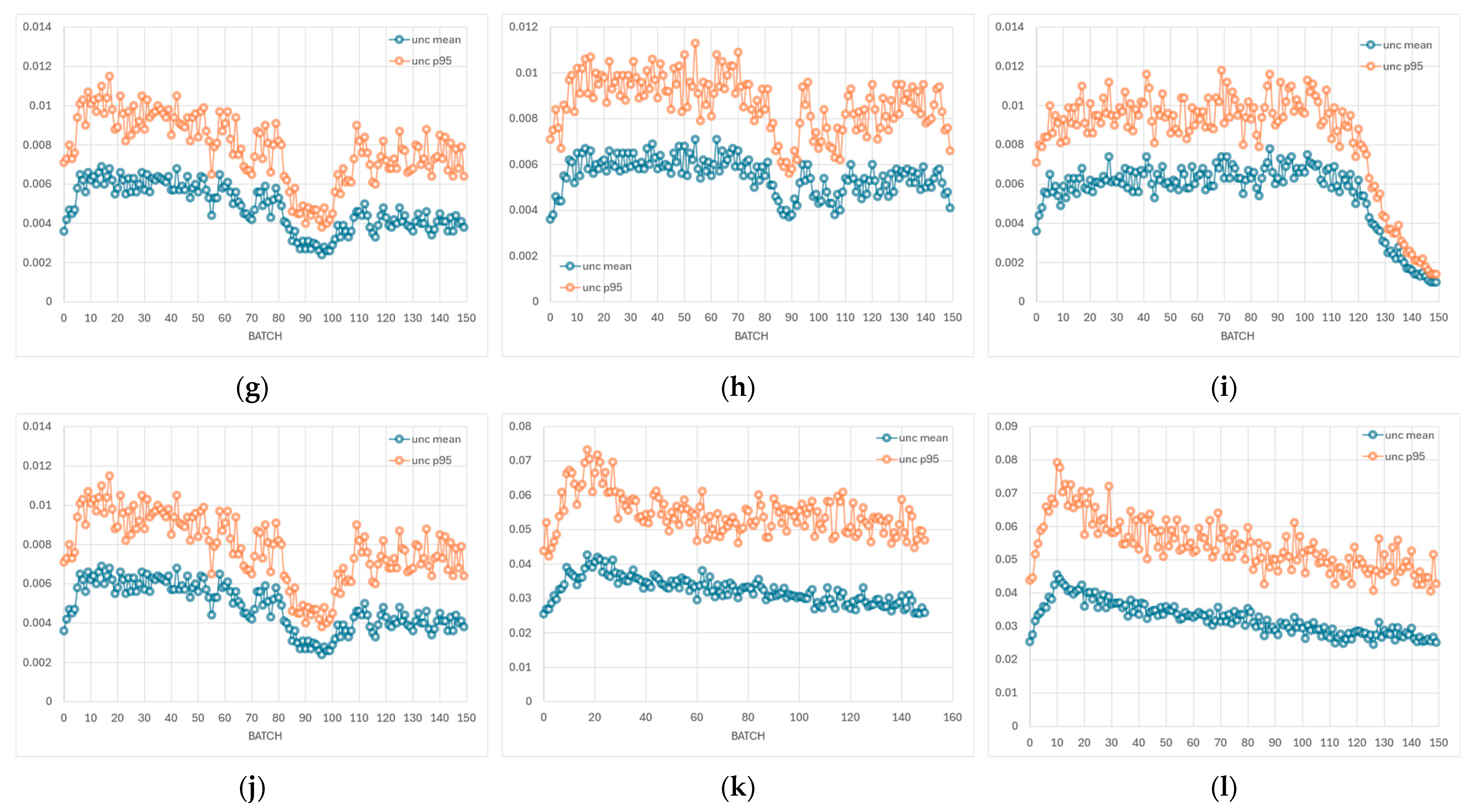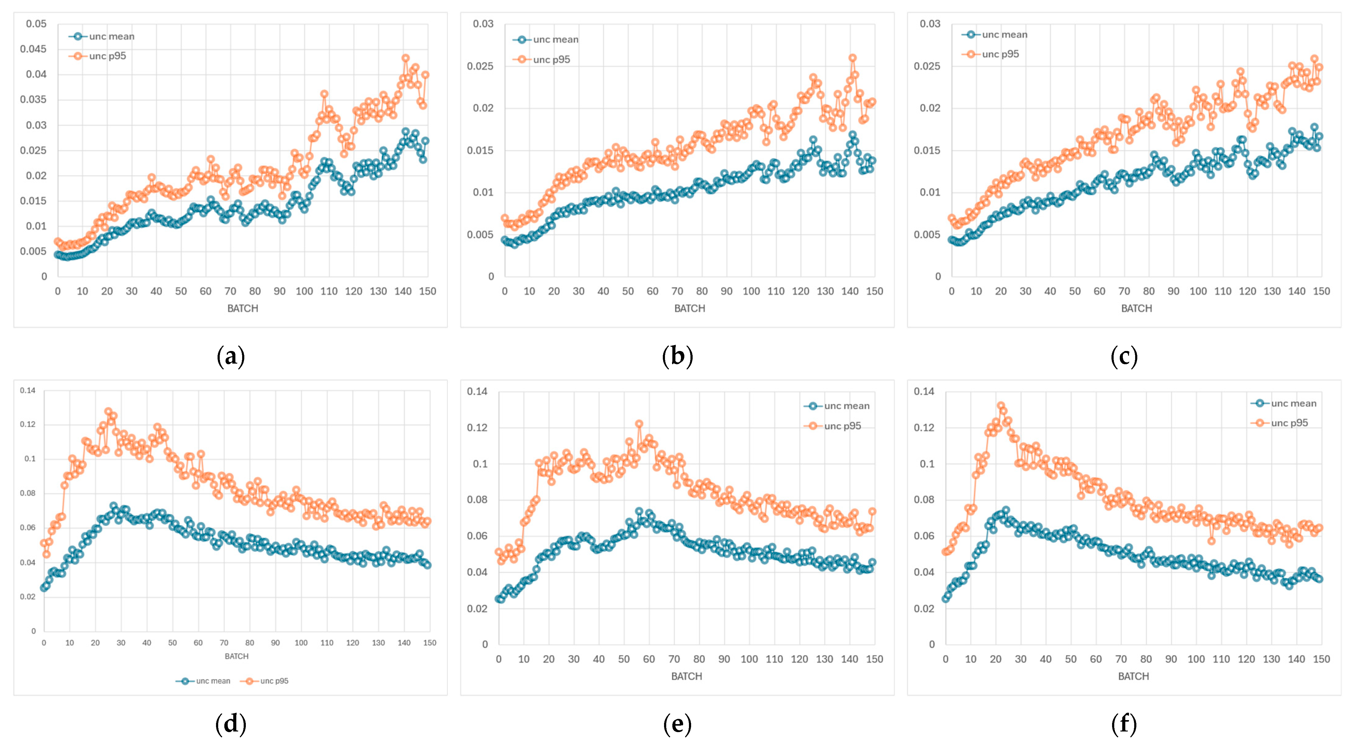 - Acquisition Scoring: The candidates are scored according to the active learning acquisition functions (uncertainty, diversity, hybrid, or hypervolume improvement). The scoring step identifies a batch of promising individuals for the evolutionary operators.