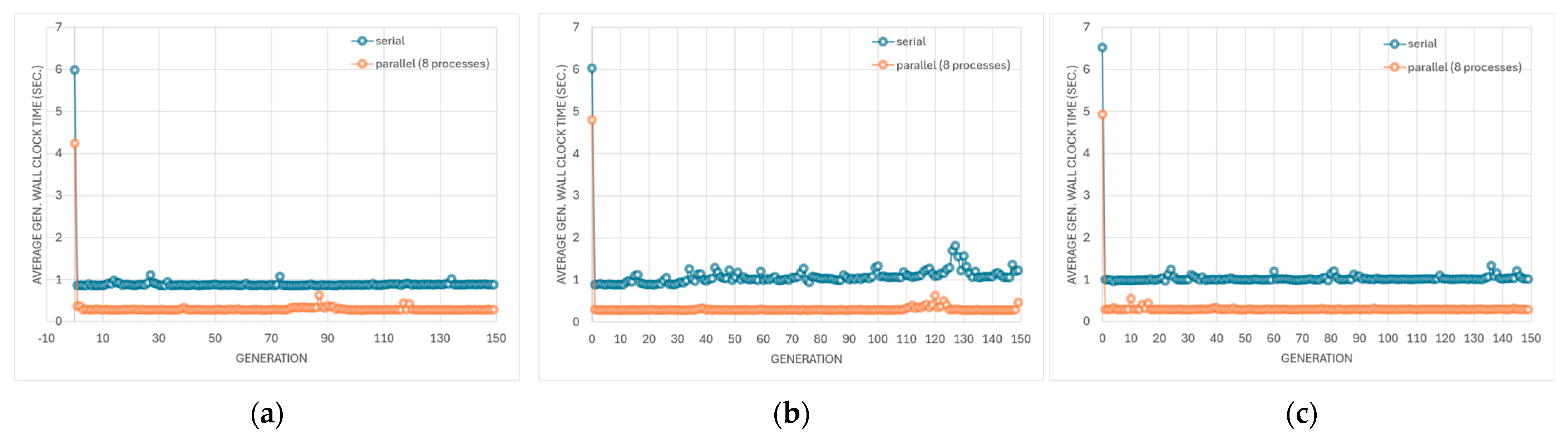 | Design | Algorithm | Mean Wall-Clock Time [s/gen] | Total Wall-Clock [s] | Wall-Clock Speedup | Parallel Efficiency [%] | Time Reduction [%] | Per-Generation Speedup |
