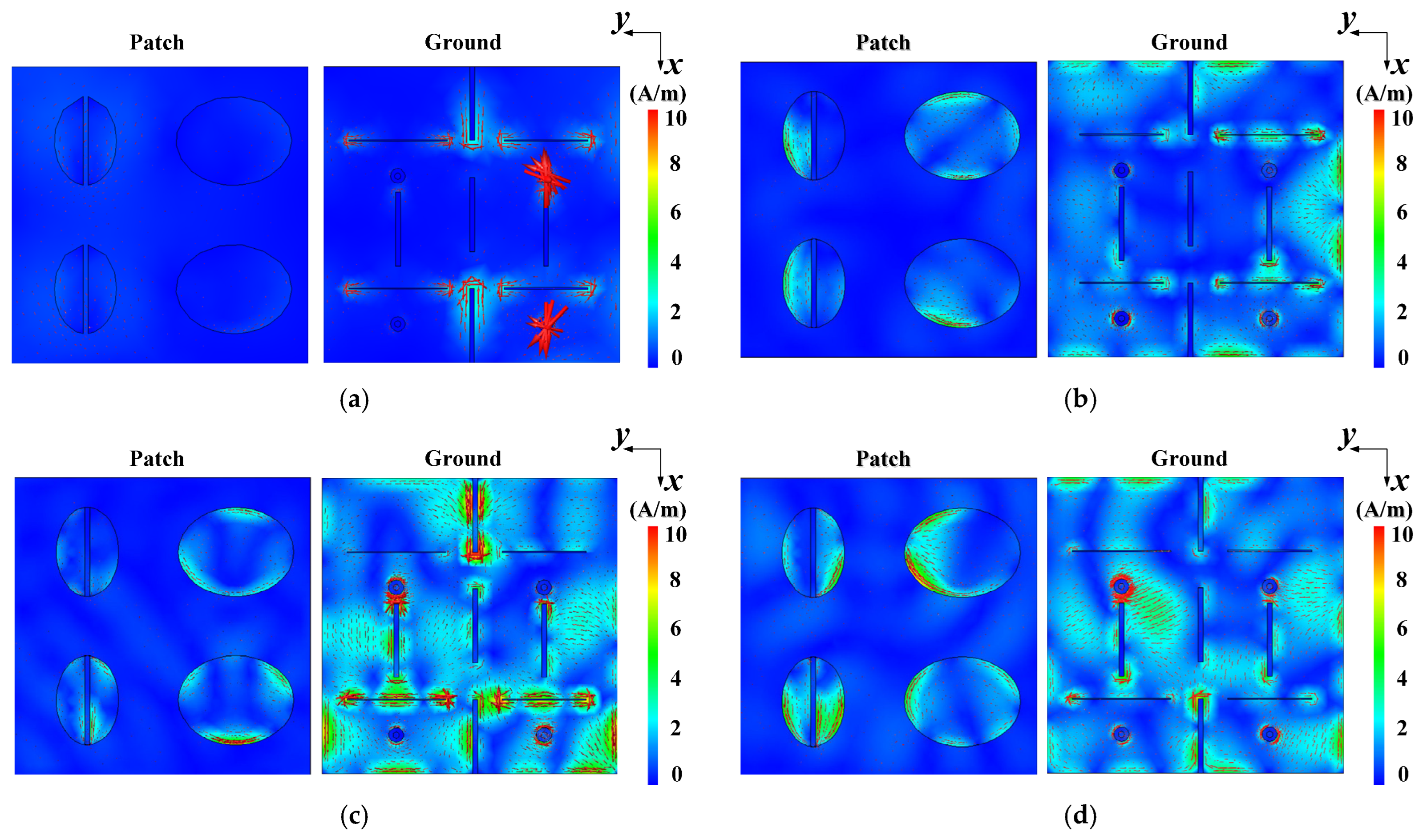 - Liu, Y.; Du, B.; Jia, D. Design of Broad-Angle Low-RCS Microstrip Antenna for Dual-Polarization Using Characteristic Mode Analysis. Electronics 2025, 14, 2121. [Google Scholar] [CrossRef]