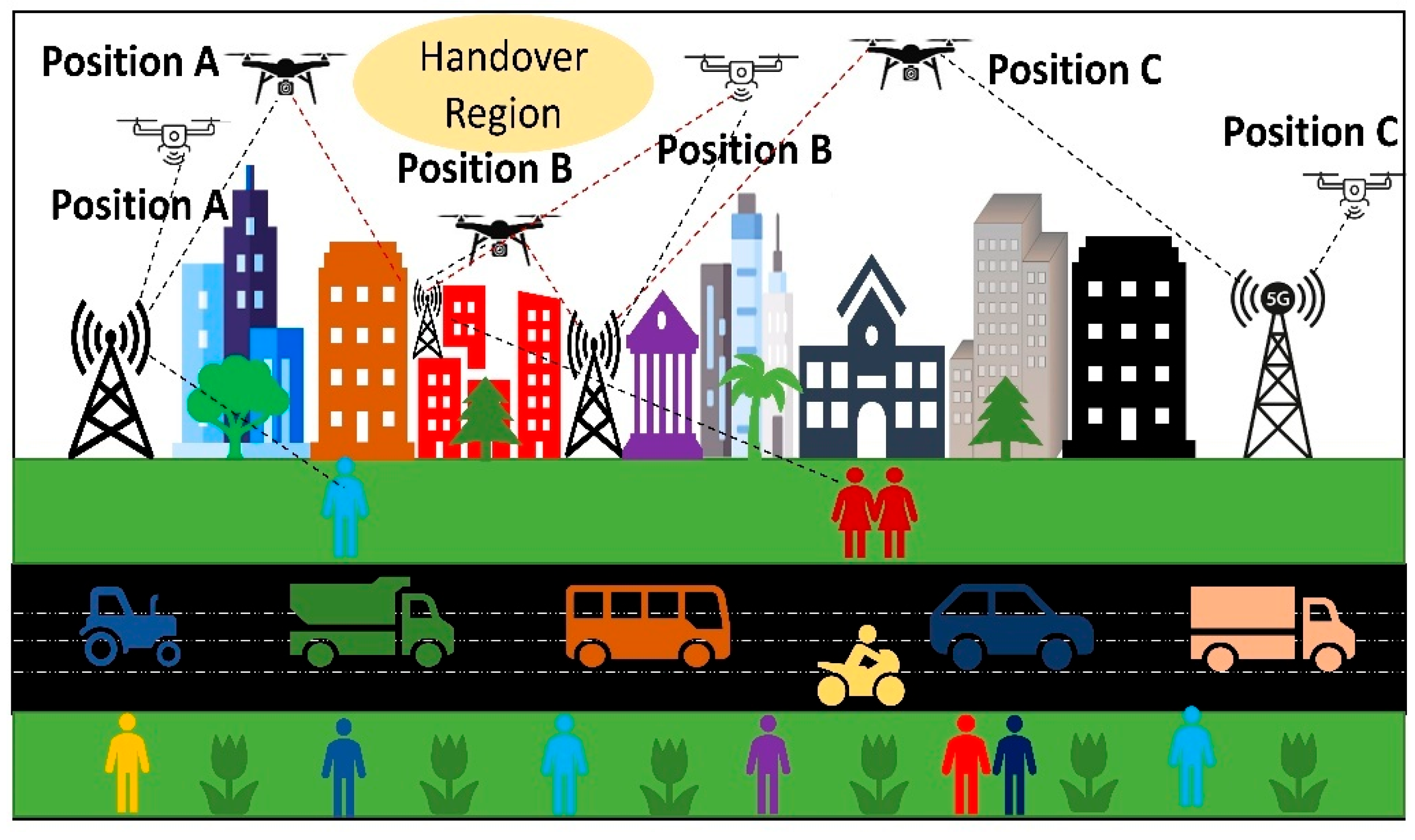 1]. Unlike terrestrial users, UAVs operate at varying altitudes and travel long distances at high speeds. They frequently switch between base stations (BSs), which can degrade network performance [