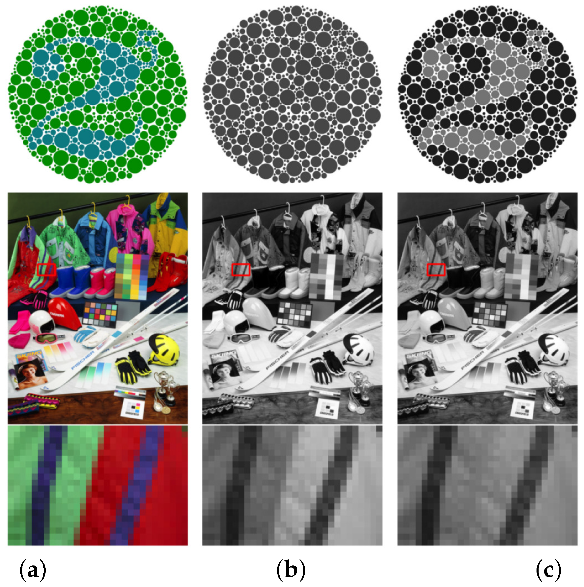 - Zhang, L.; Wan, Y. Color-to-gray image conversion using salient colors and radial basis functions. J. Electron. Imaging 2024, 33, 013047. [Google Scholar] [CrossRef]
