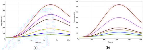 Temperature under different surge peaks. (a) PCT press-pack diode (b) PCT insulated module diode.