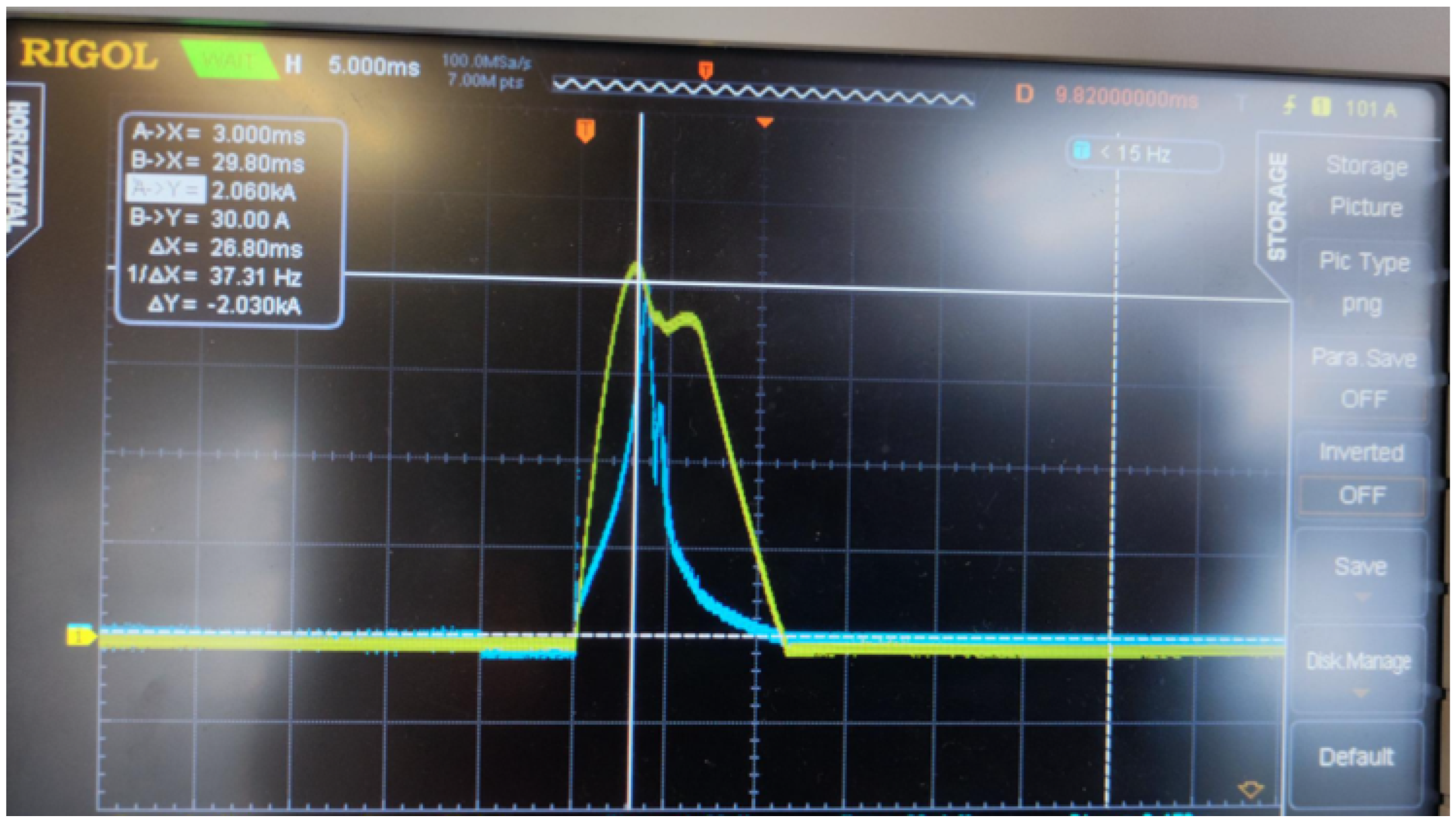 | Peak Current (A) | Peak Voltage (V) | Peak Temperature (°C) | ||