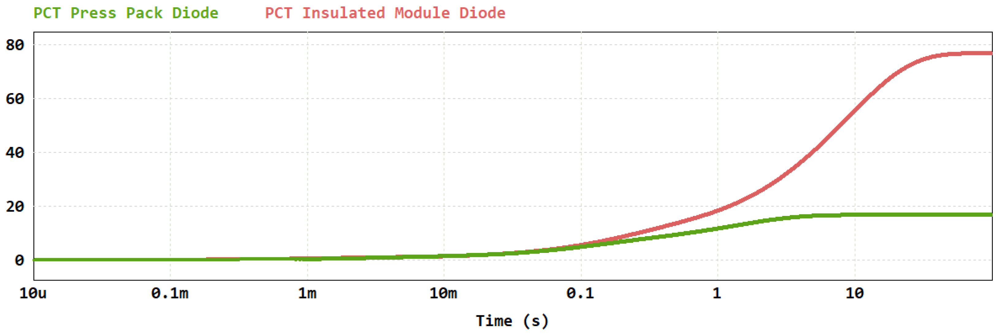 - A comparative analysis is conducted between a PCT press-pack diode and a PCT insulated module diode, with both having identical silicon chip dimensions, electrical specifications, and power ratings, under high-surge current conditions.