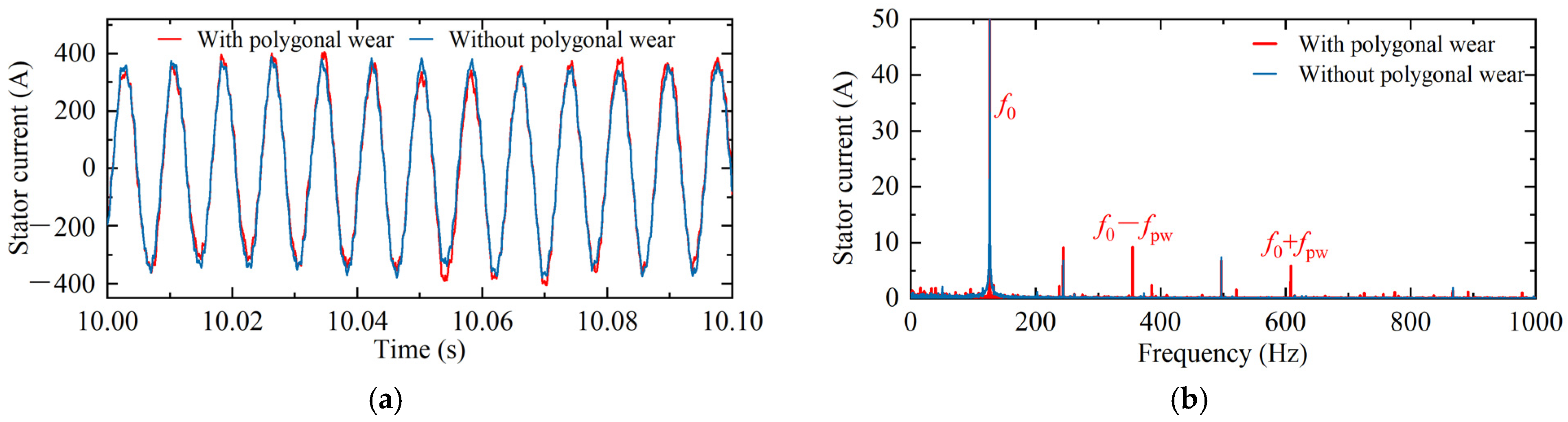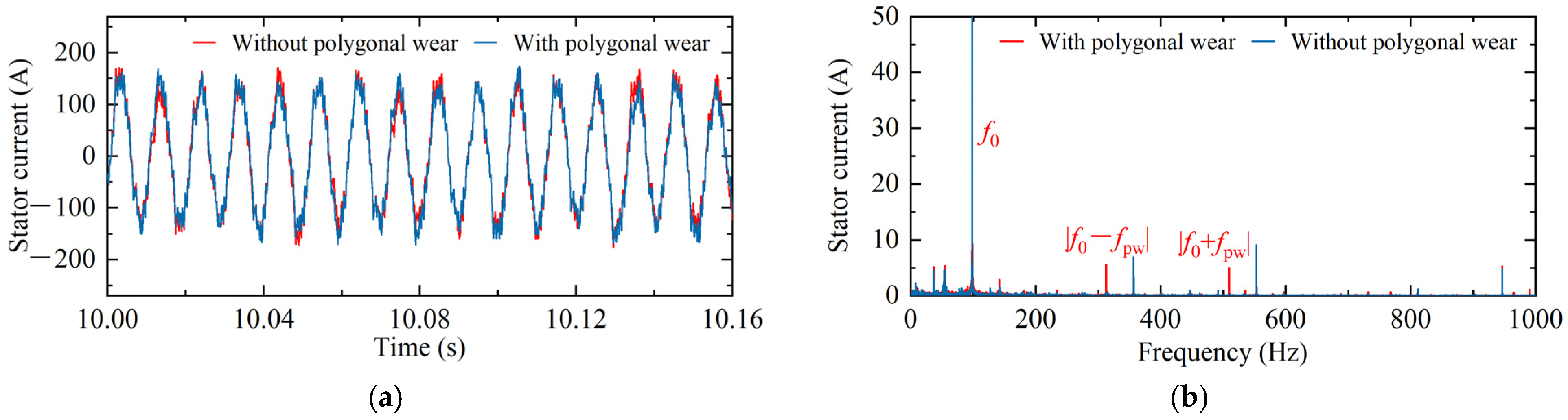 - Analyzing the influence of typical wear types (e.g., wheel flat and polygonal wear) on the electric drive system, and establishing a frequency-domain mapping between wheel wear and electrical parameters.