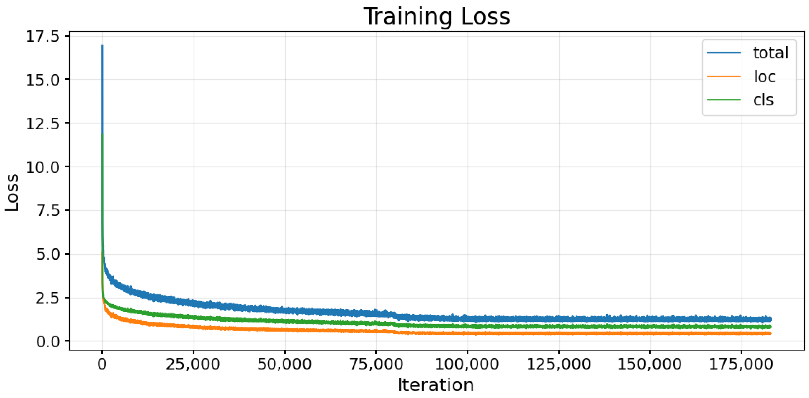 The target function of the entire network follows the SSD-based standard detection loss. In the training process, classification loss