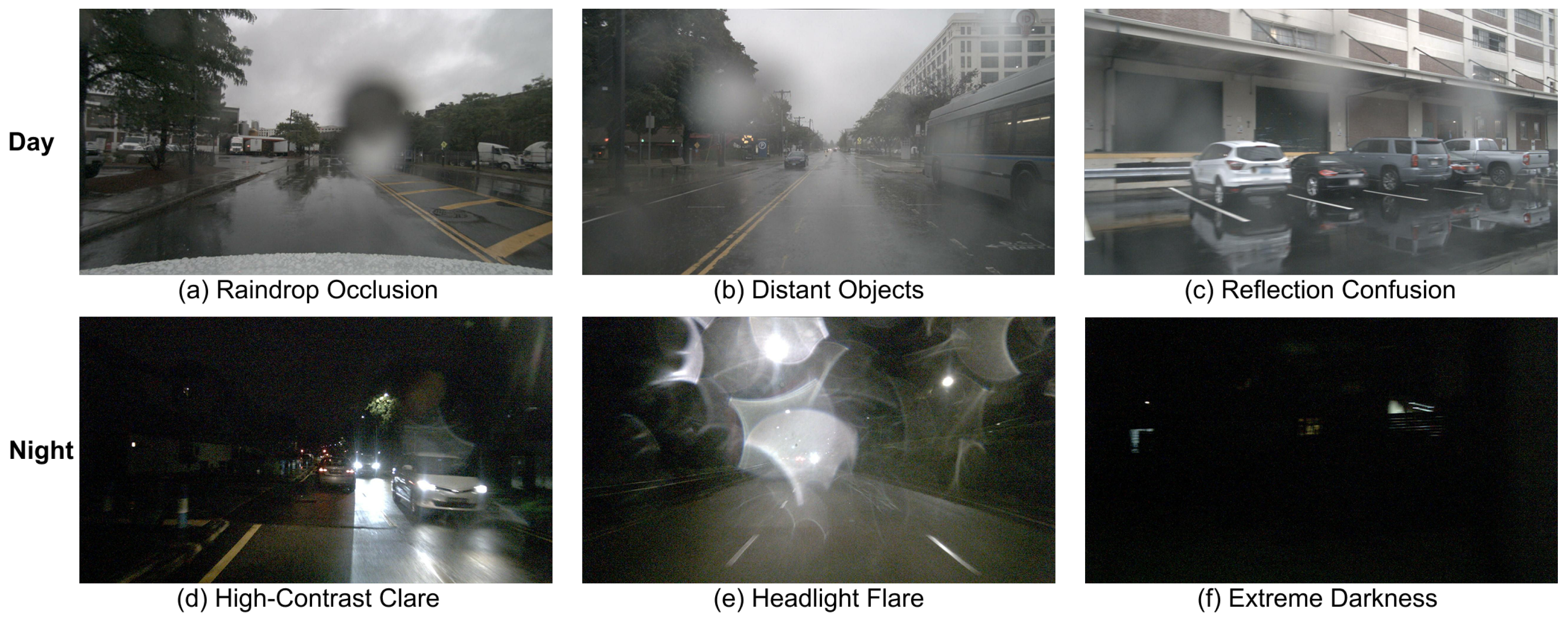 Future work can thus proceed along several complementary directions. On the evaluation side, extending experiments to additional adverse weather benchmarks and broader taxonomies, such as BDD100K-weather, Cityscape variants, or other multi-condition urban driving datasets, would clarify how well the proposed hierarchy transfers across domains and object classes. On the modeling side, learning DIP parameters under explicit degradation supervision, or conditioning them on estimated weather attributes, may enable more fine-grained and adaptive enhancement. Dynamic hard negative mining and noise-aware sample selection strategies, such as progressive sample selection with contrastive learning, could help better accommodate heterogeneous difficulty levels and annotation uncertainty [