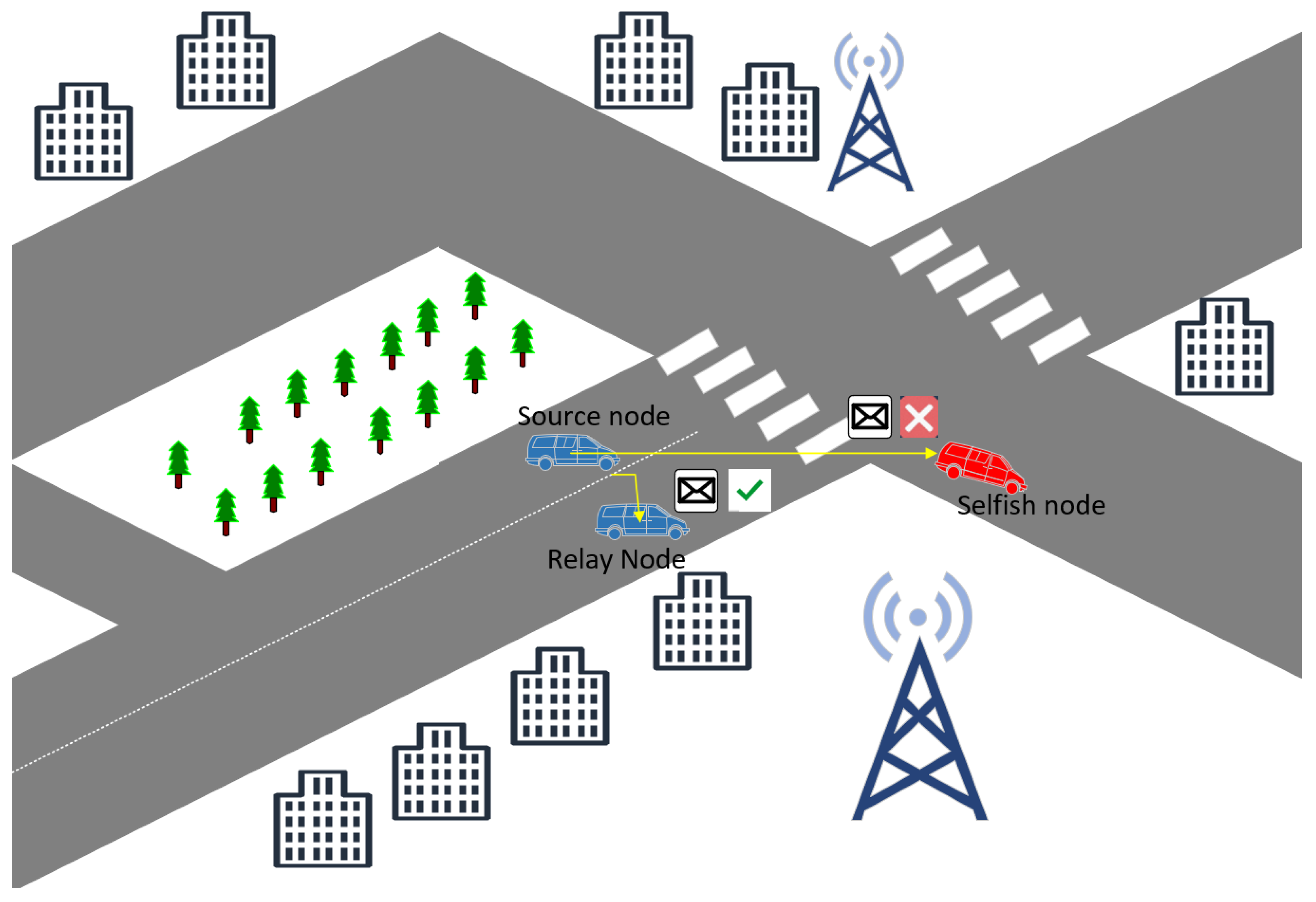 • Energy-saving Equivalence Assumption: In practice, VANET nodes may enter sleep or inactive modes to conserve energy. As reviewed by Gu Rehman et al. [28], this behavior has an effect equivalent to selfish behavior during vehicle operation. Therefore, for the sake of theoretical and experimental analysis, such energy-saving behavior is considered equivalent to selfish behavior to maintain model consistency and completeness.