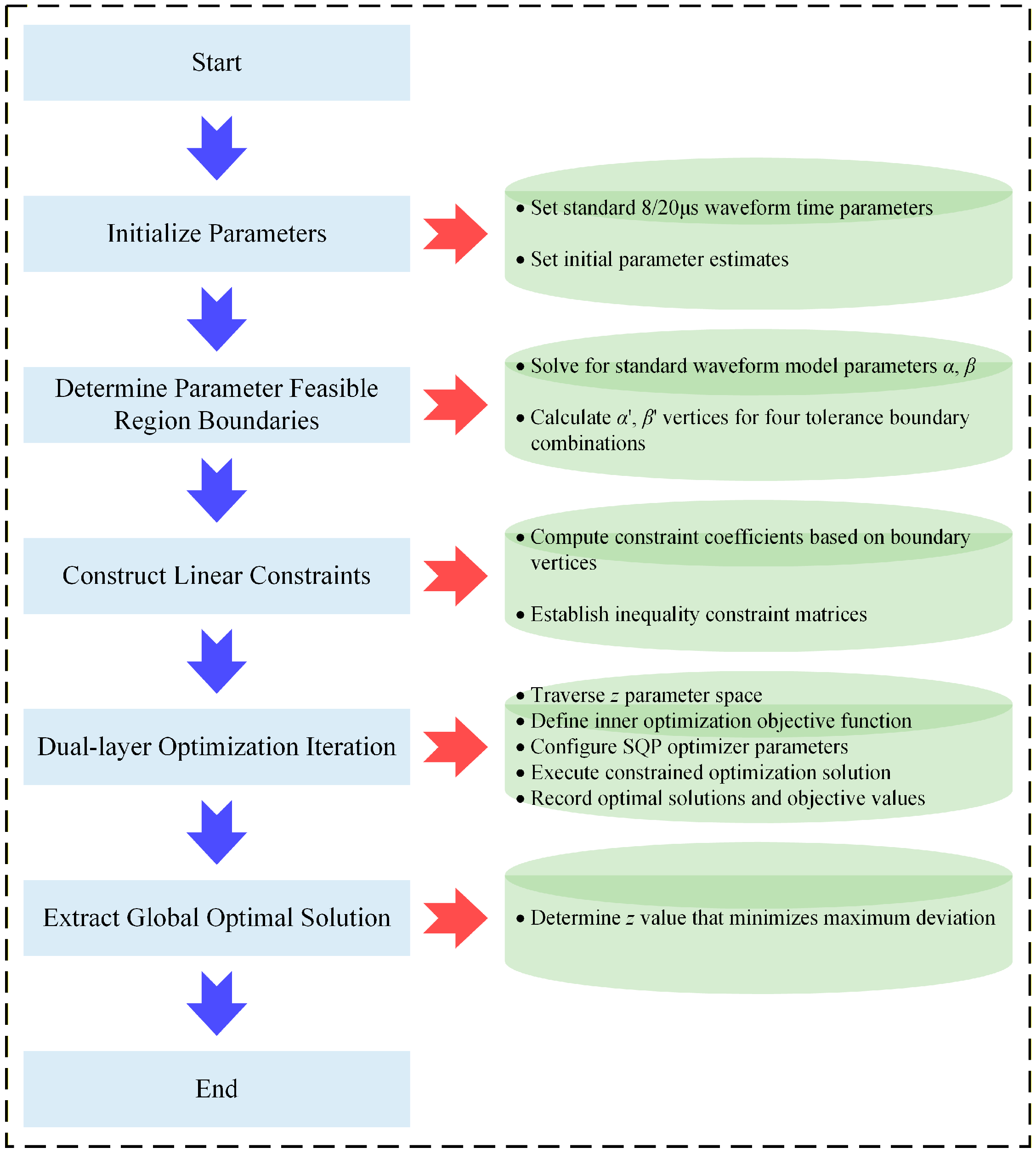 | Input: Standard waveform: T1 = 8 μs, T2 = 20 μs, initial guess: x0 = [41,875, 120,000], z search range: [−1, 1] with step 0.01 Output: Optimal z value, corresponding maximum deviation |