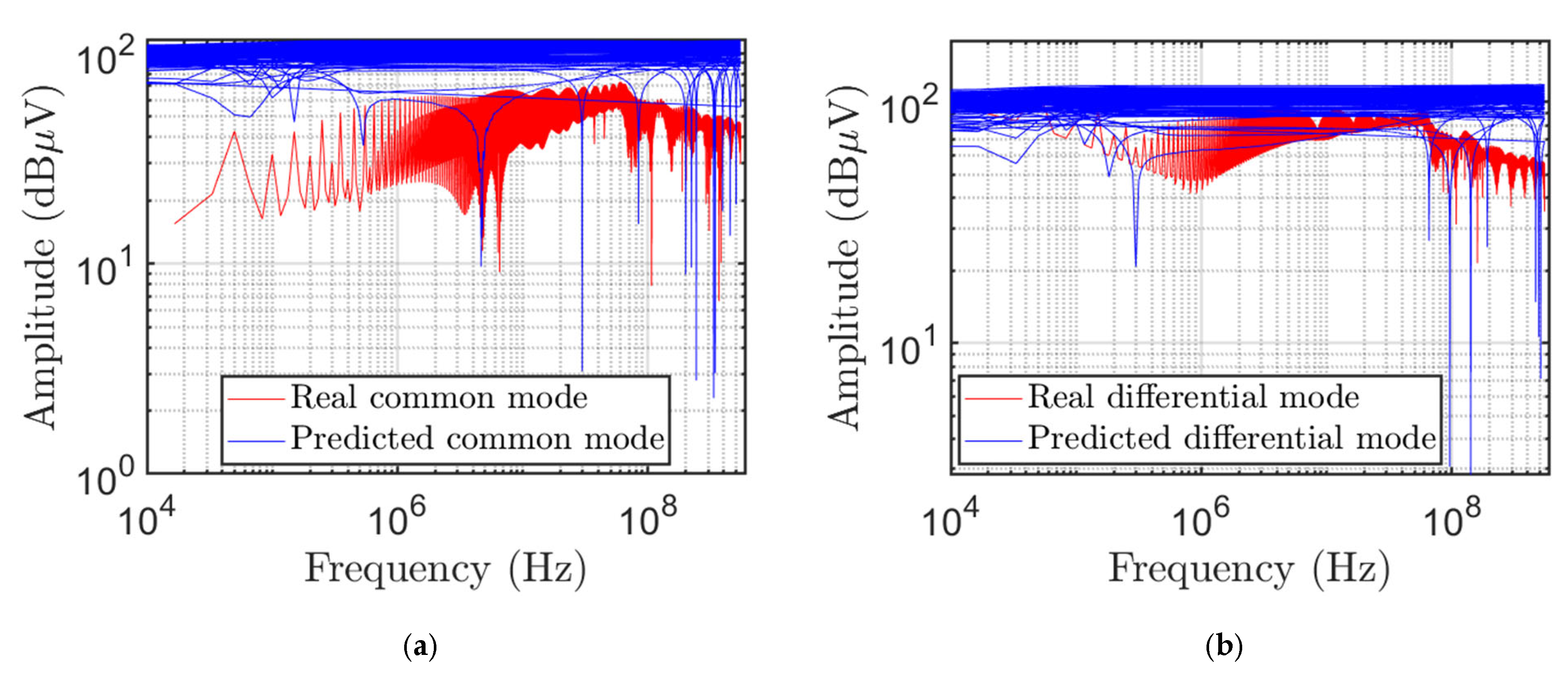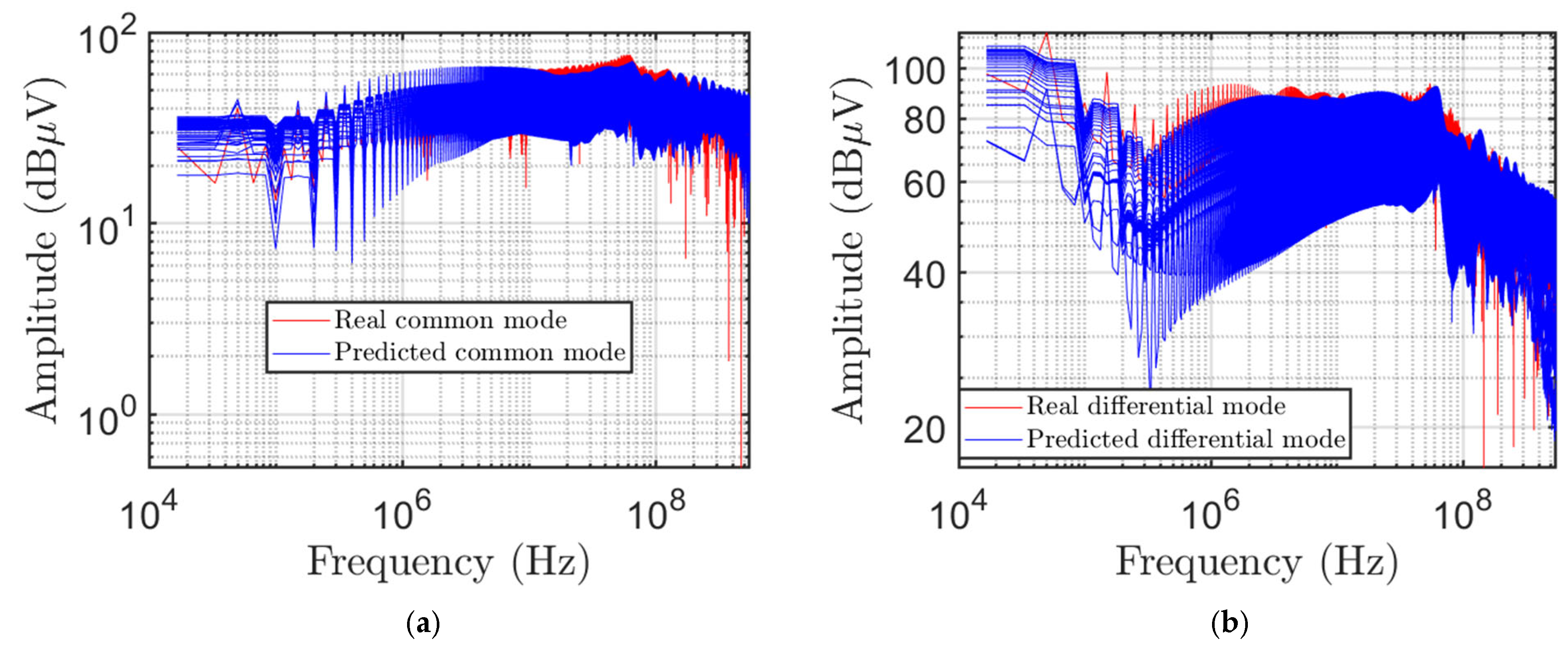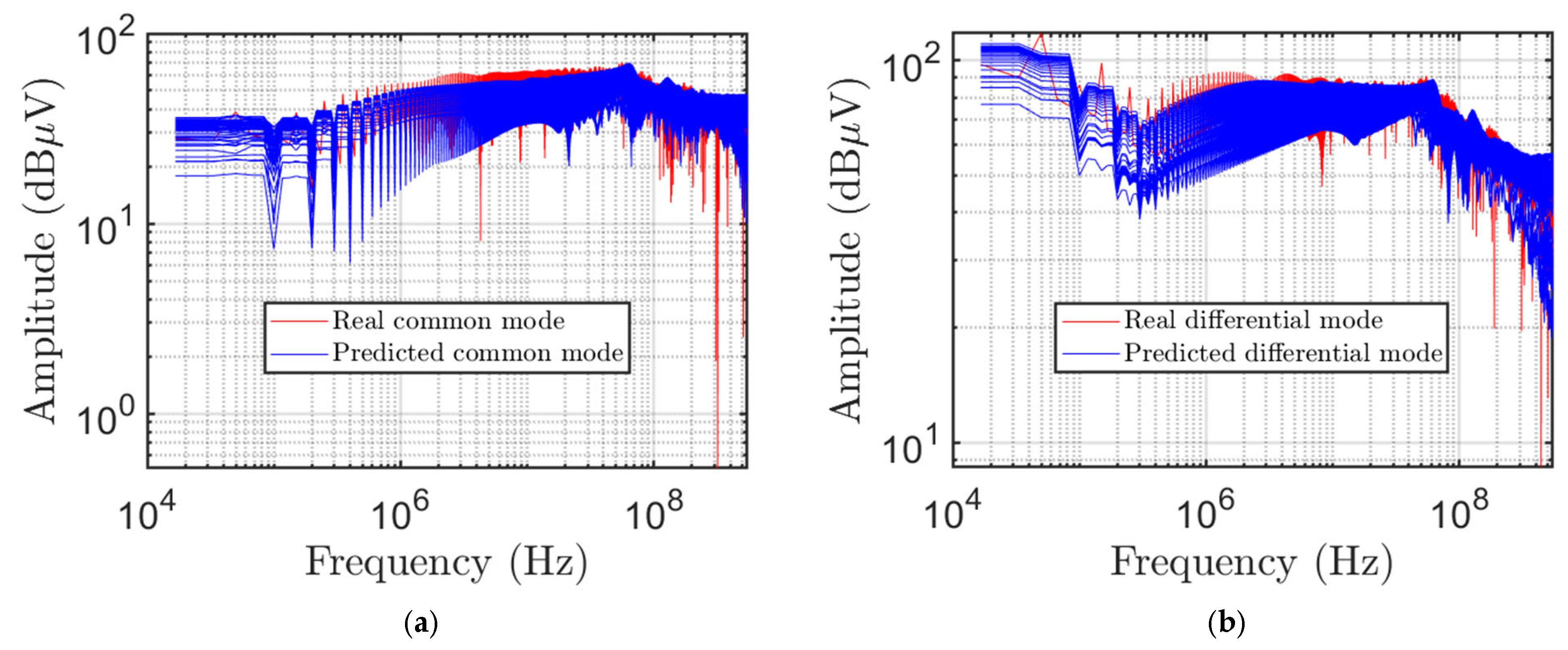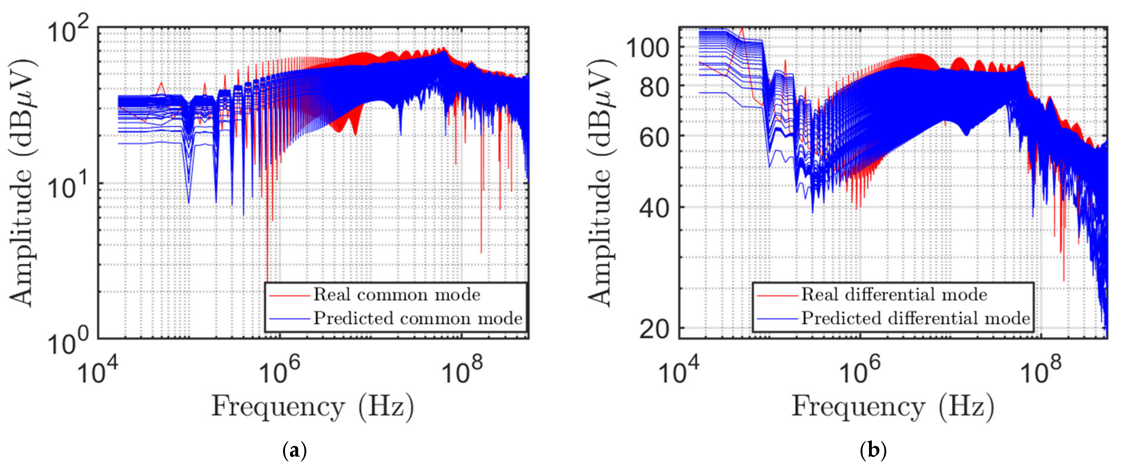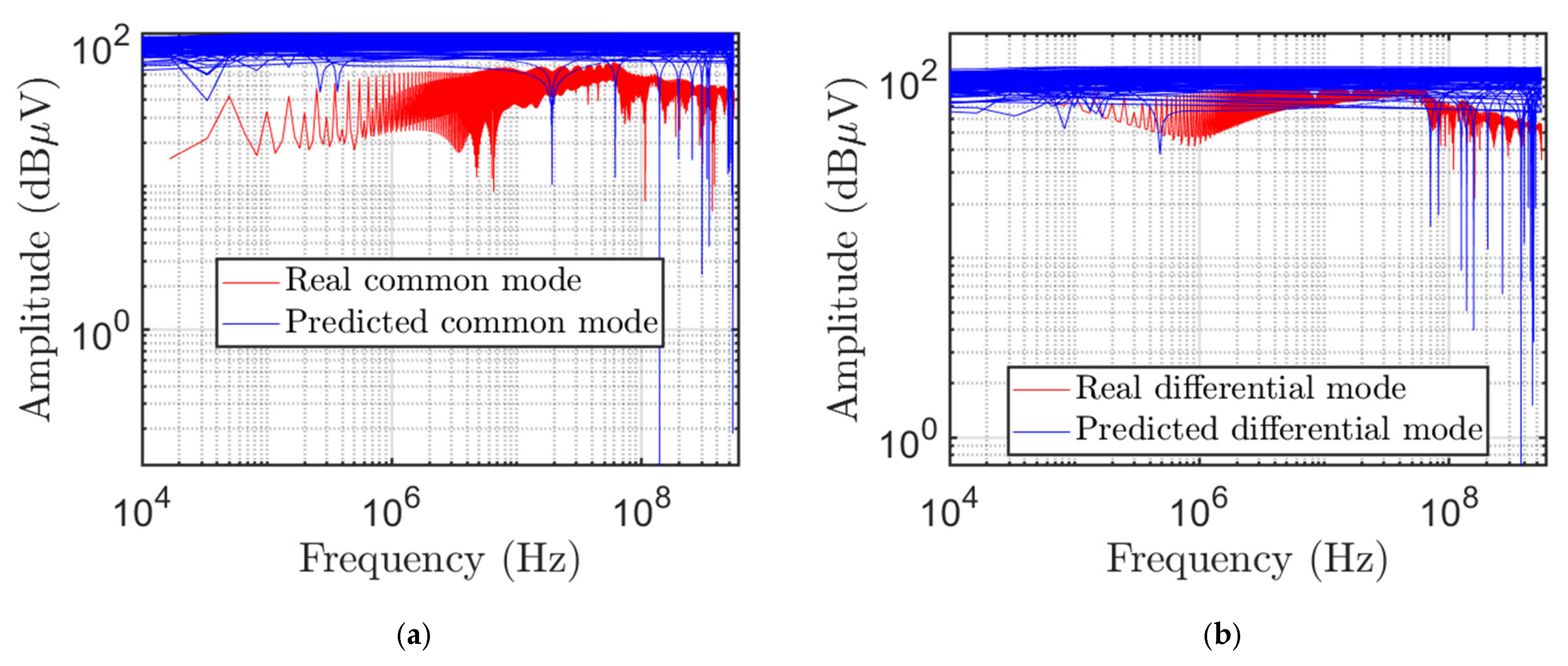 Figure 9 shows the real and predicted values for both (a) common- and (b) differential-mode voltages.