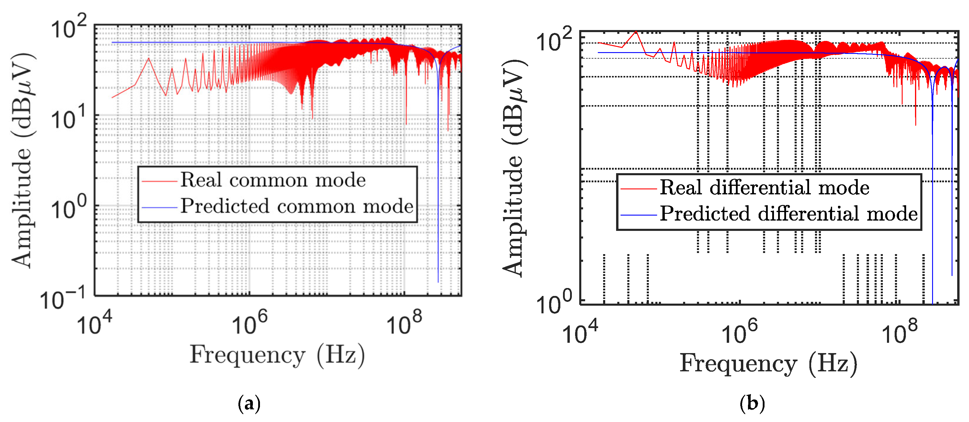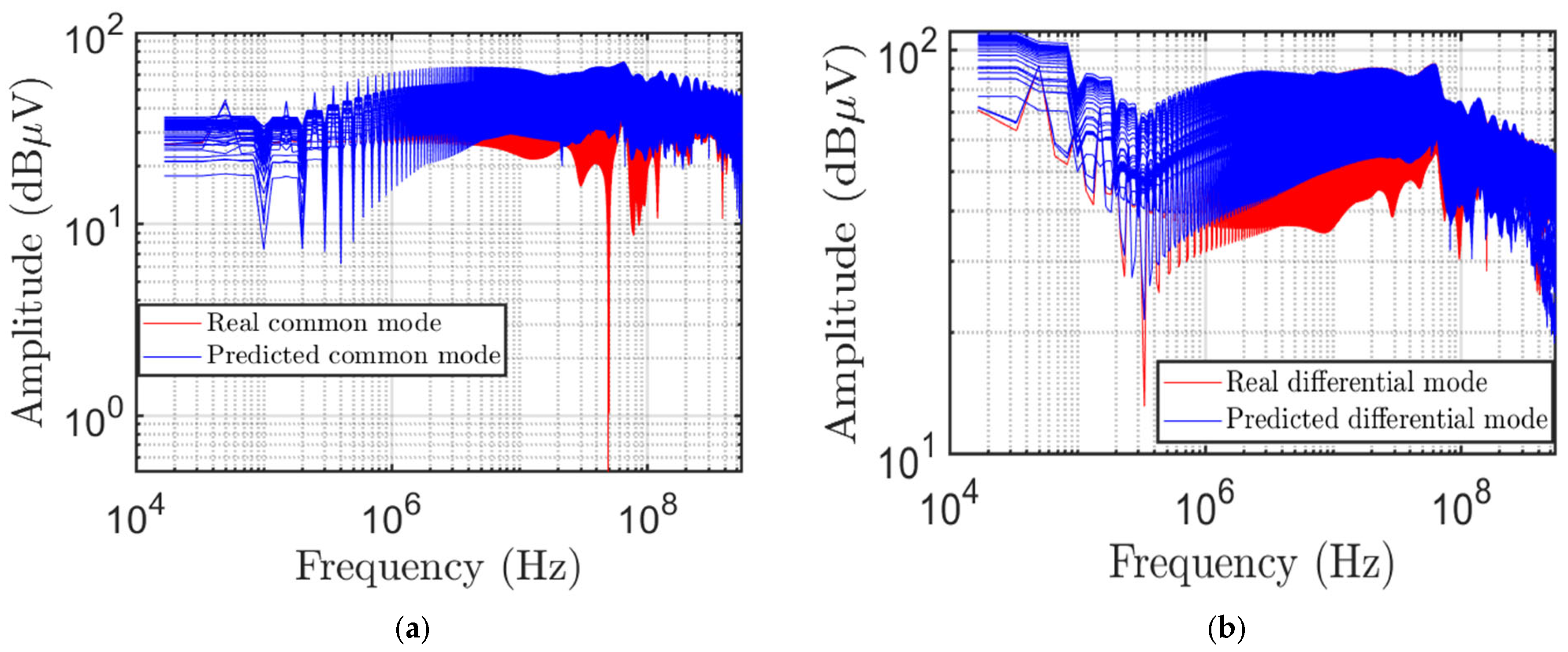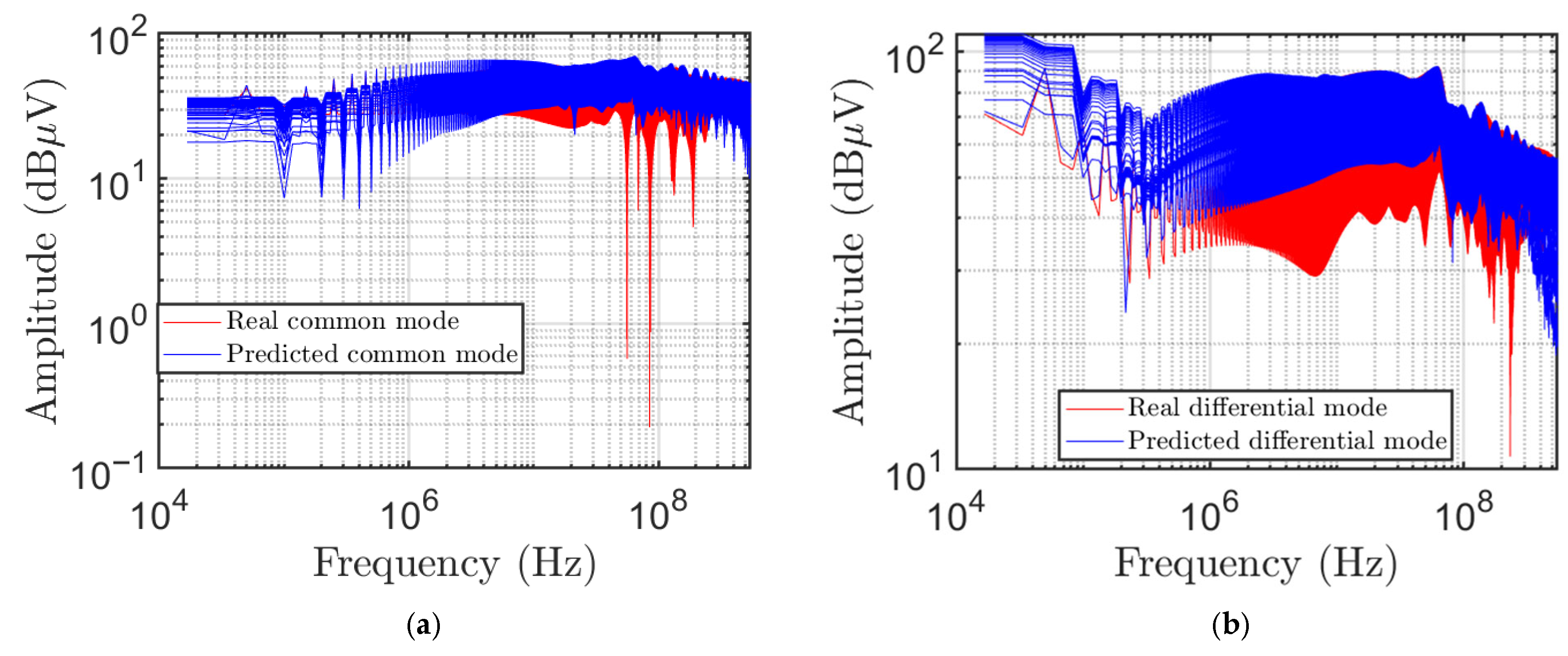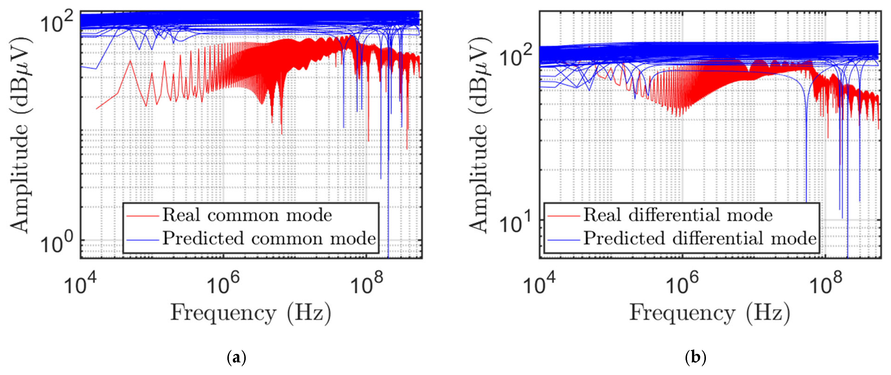 Figure 9 shows the real and predicted values for both (a) common- and (b) differential-mode voltages.