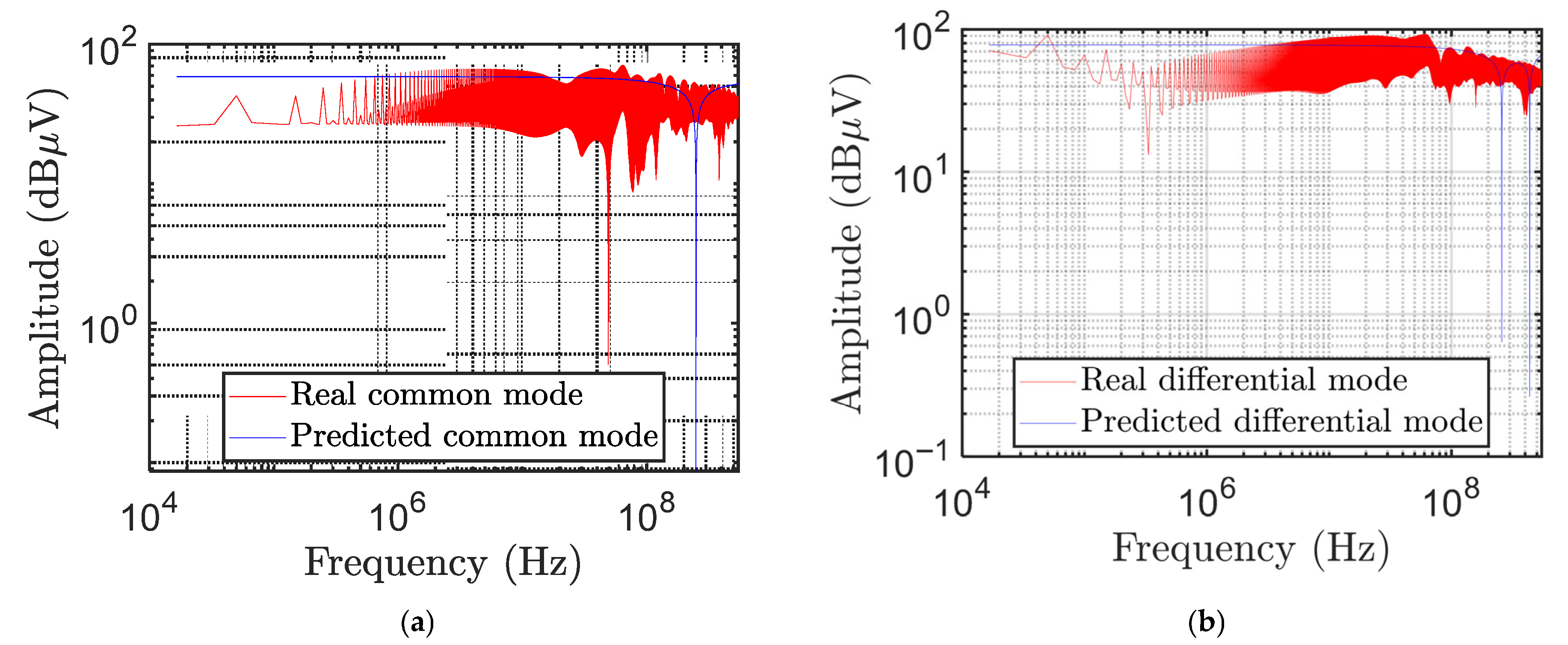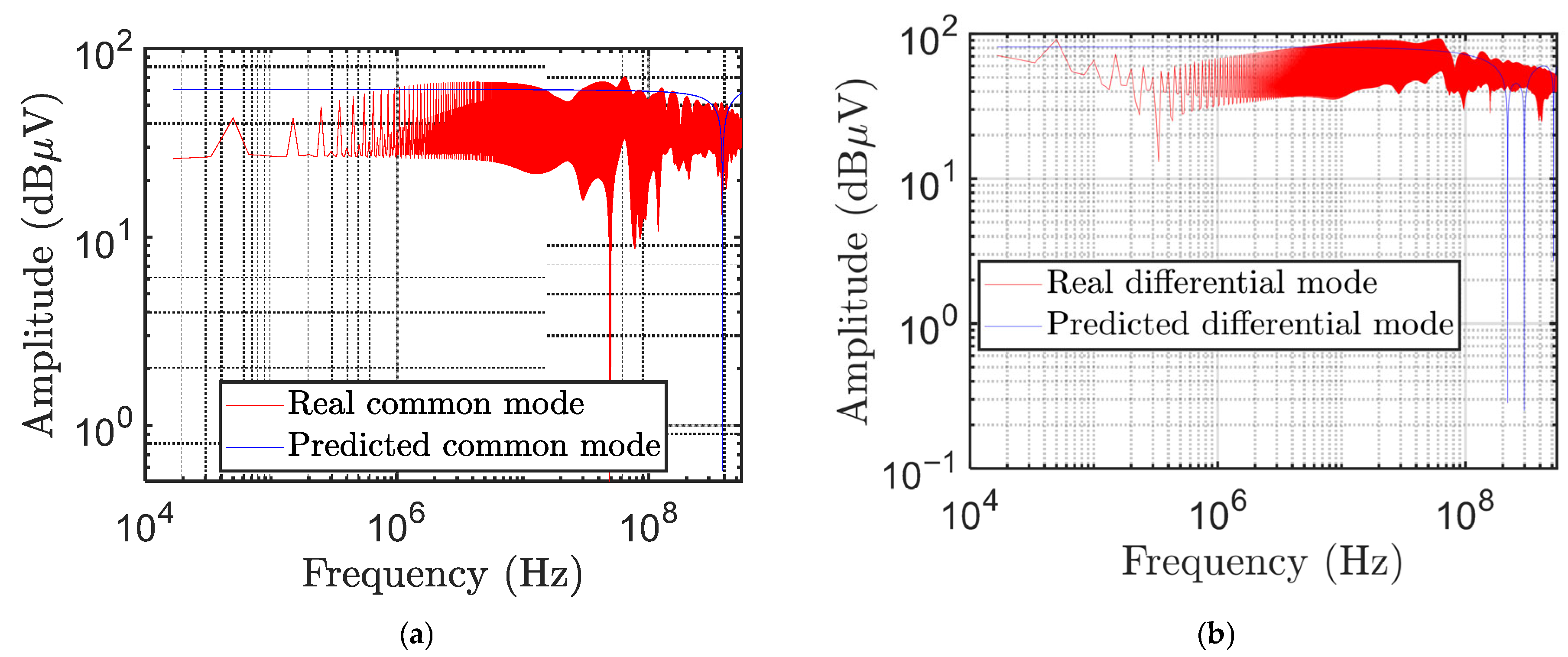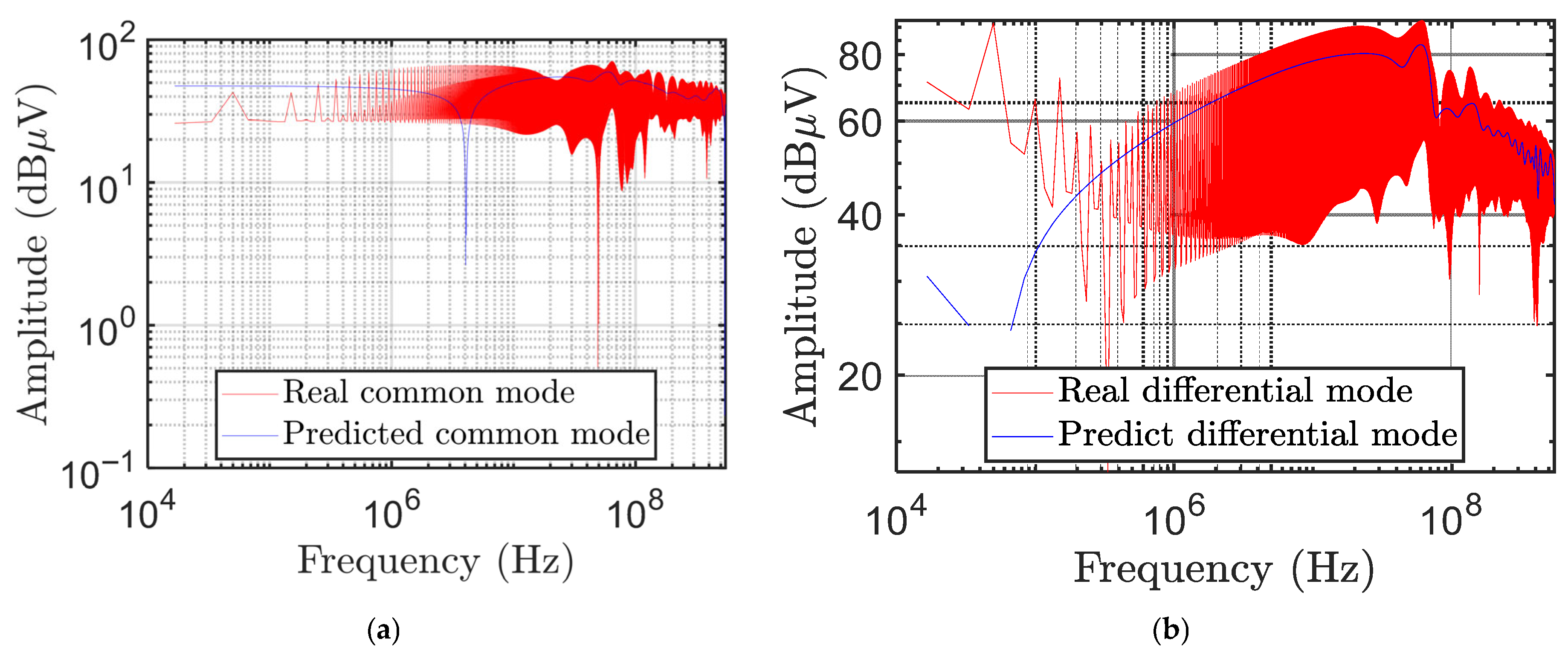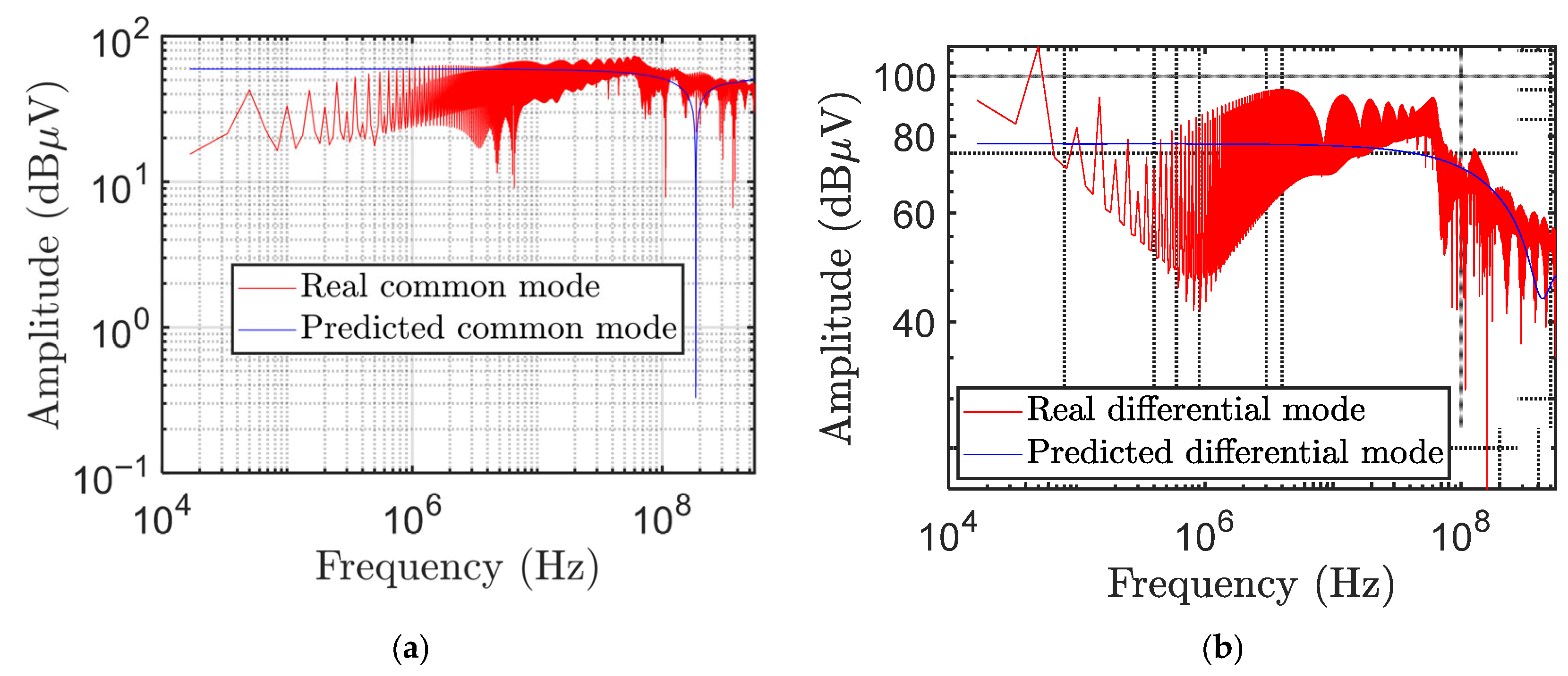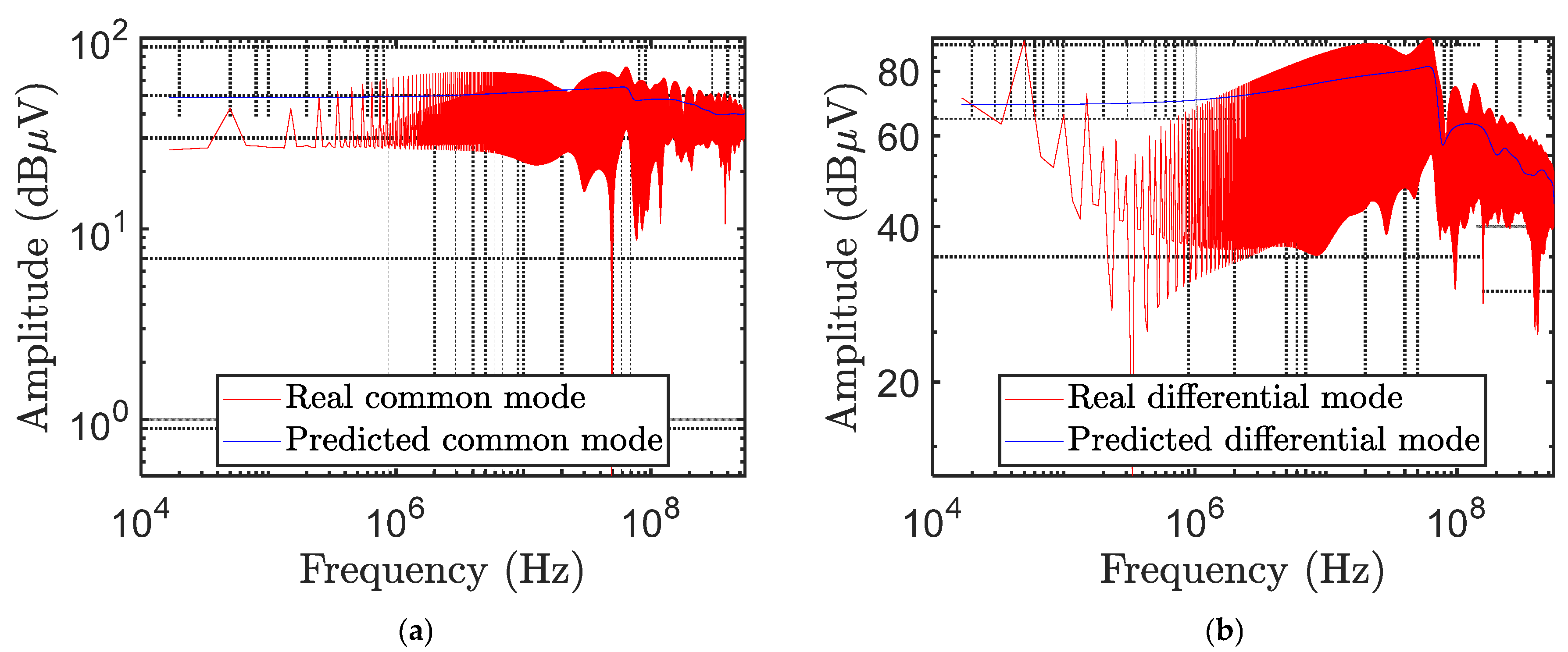 Figure 9 shows the real and predicted values for both (a) common- and (b) differential-mode voltages.
