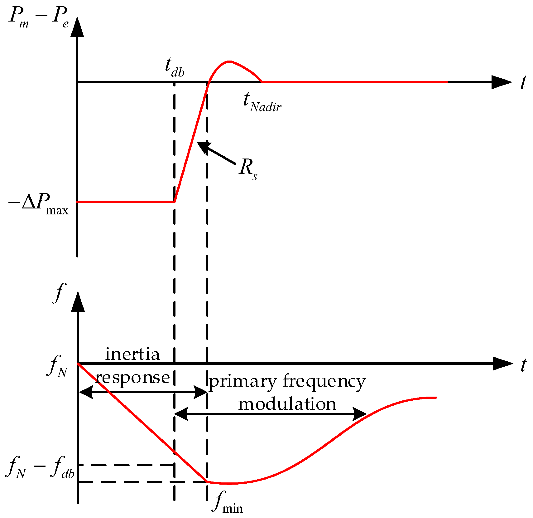 2.1. Minimum Inertia Based on the Constraint of RocoF