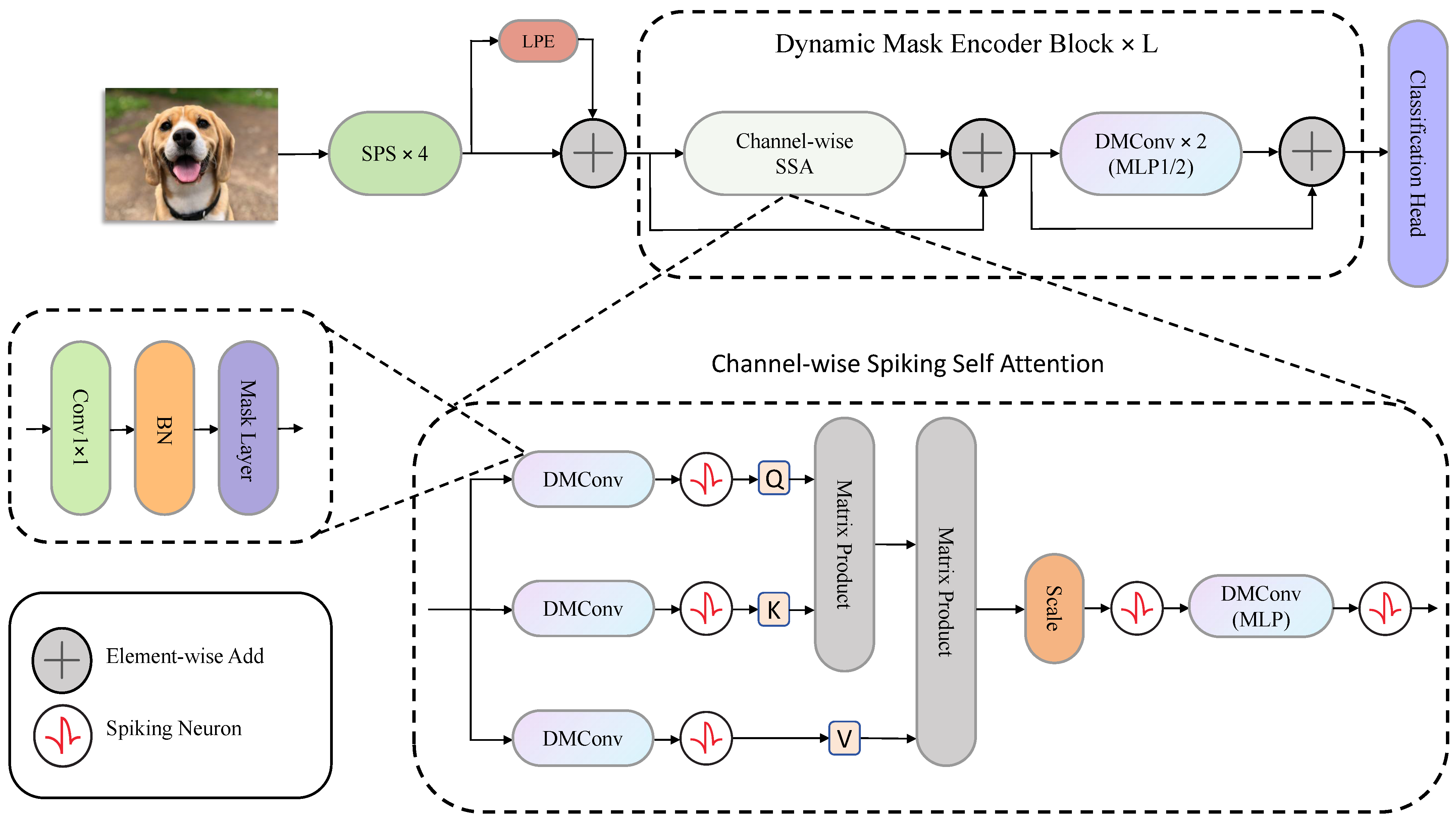 Chicago/Turabian StyleLi, Jiao, Zirui Zhao, Shouwei Gao, and Sijie Ran. 2026. "SpikingDynamicMaskFormer: Enhancing Efficiency in Spiking Neural Networks with Dynamic Masking" Electronics 15, no. 1: 189. https://doi.org/10.3390/electronics15010189