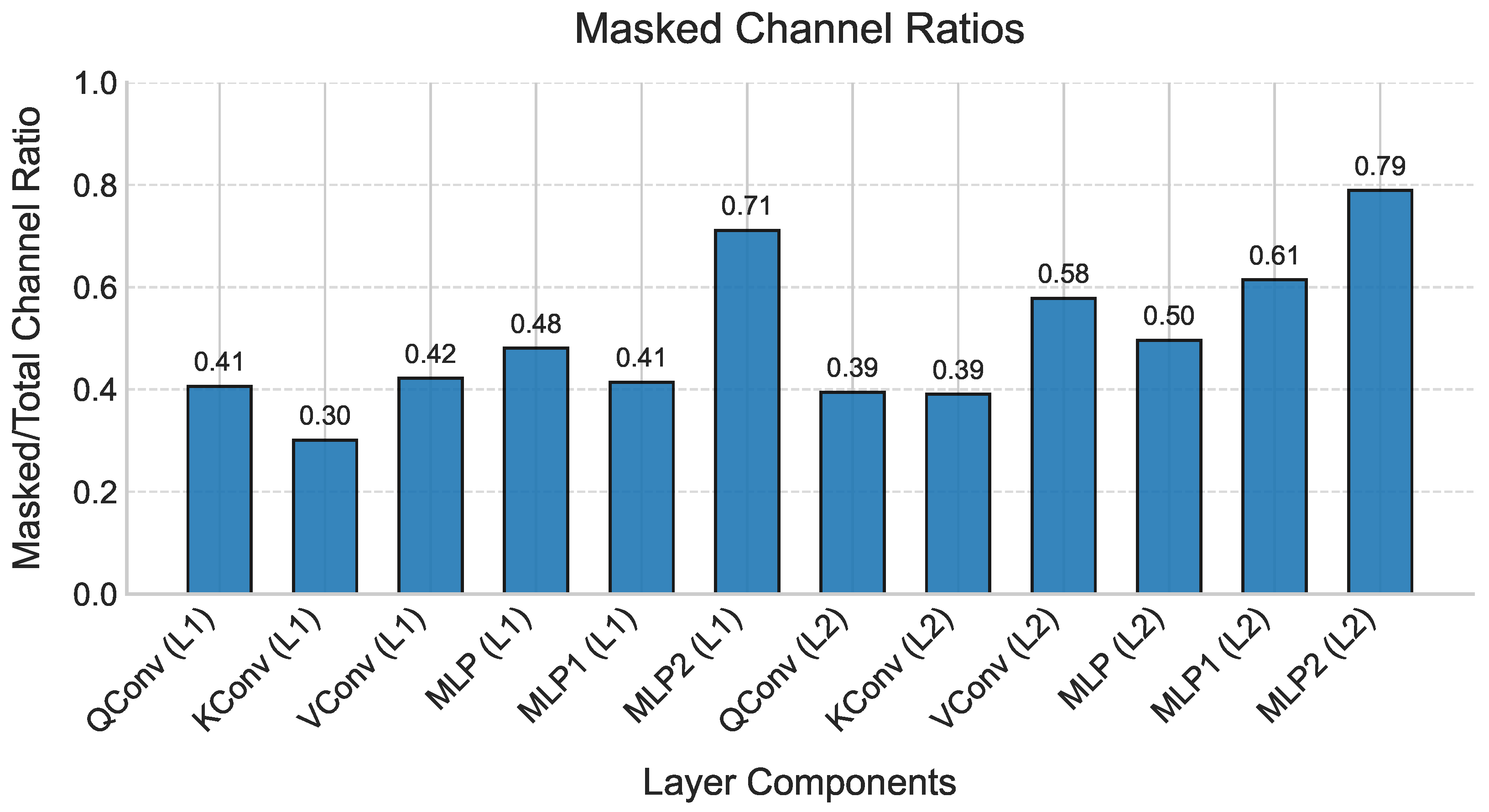 - To address channel redundancy in Spikformer networks, we propose DMEB that dynamically learns and adjusts mask values during training to suppress spike emissions in ineffective channels. Pruning these redundant channels not only preserves model performance but also significantly reduces model parameters and inference energy consumption.